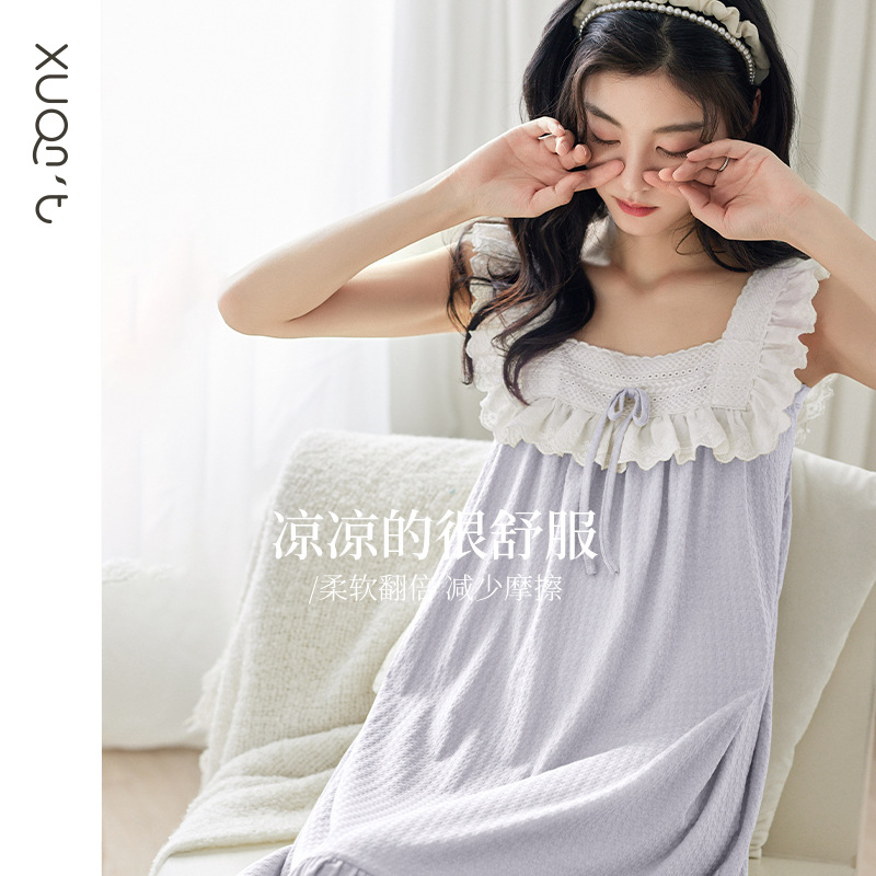 【防凸点】吊带睡裙女夏季纯棉甜美可爱小清新可外穿长款睡衣夏天