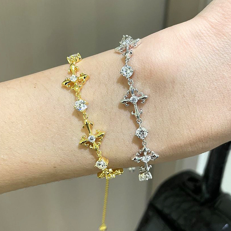 小红书爆款十字架莺尾花手链新款重工微镶爆闪手饰品