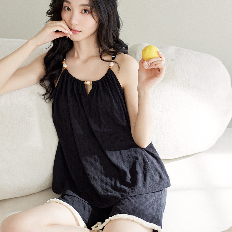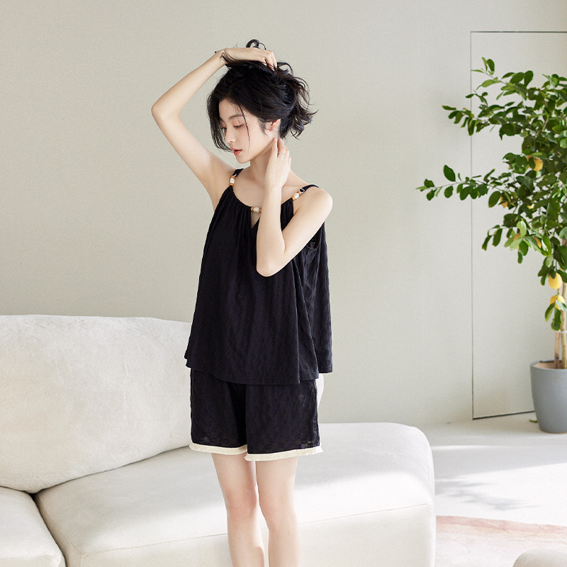 【凉感型】吊带睡衣女款夏天莫代尔纯黑色性感纯欲风家居服两件套