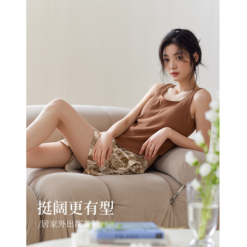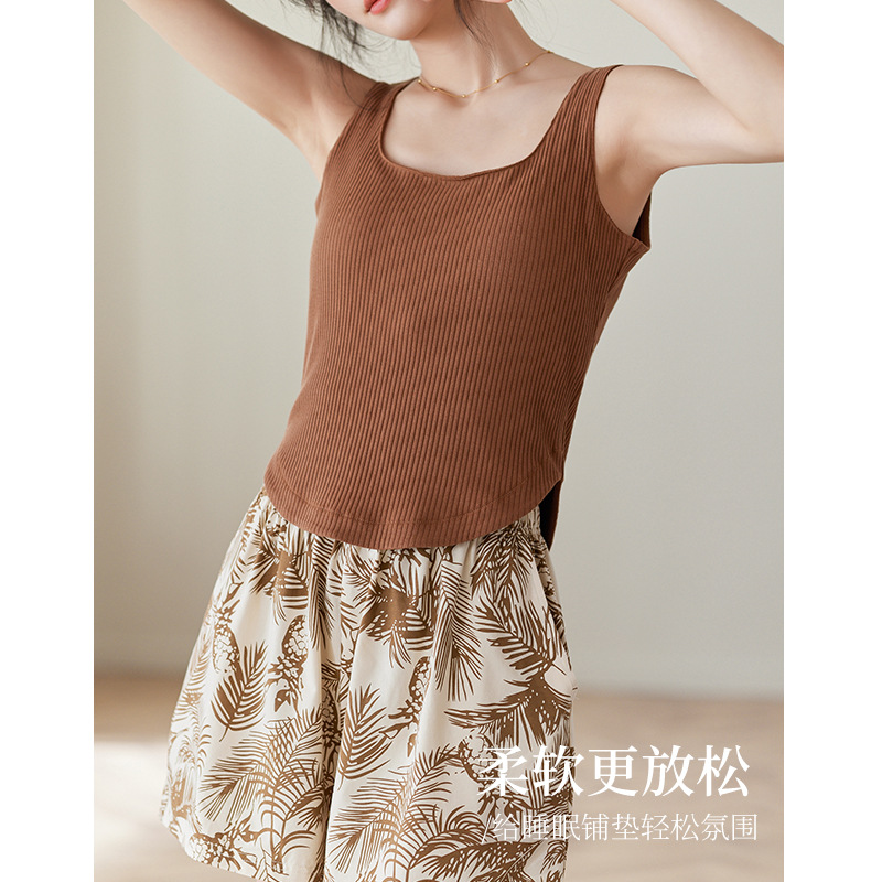 【超柔软】带胸垫睡衣女夏天薄款纯棉吊带小背心家居服夏款两件套