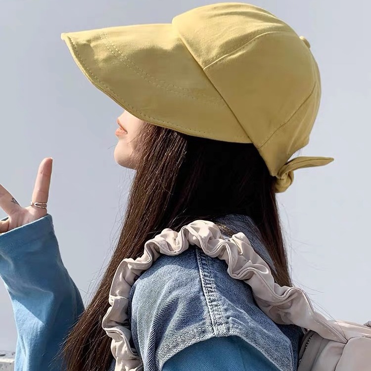 后蝴蝶结大沿遮阳渔夫帽夏季防晒防紫外线空顶太阳帽子韩版遮脸帽