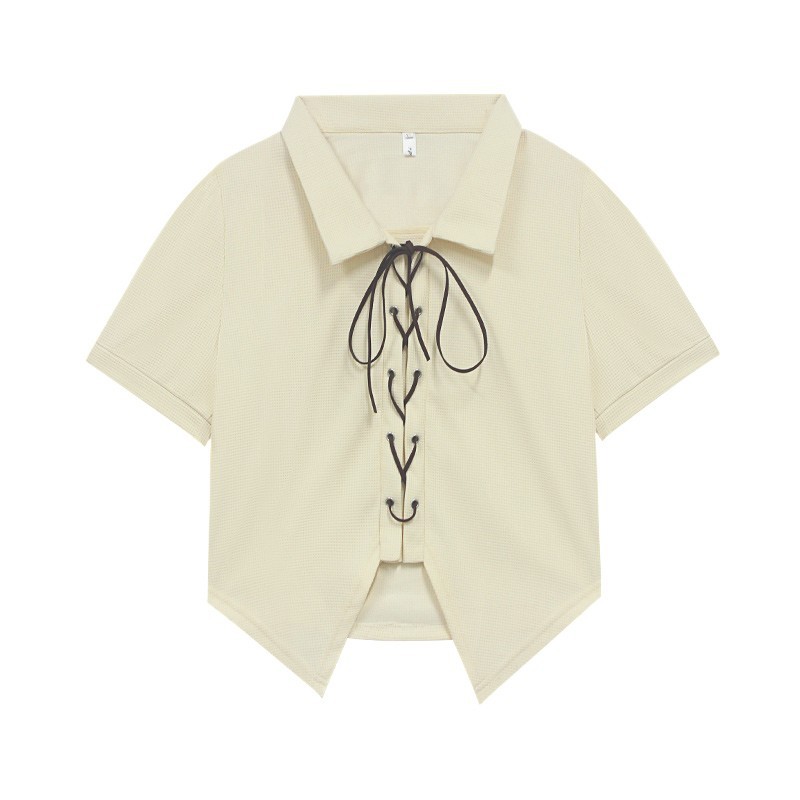 大码胖MM夏季新款不规则绑带短袖衬衫女设计感别致显瘦短款上衣潮