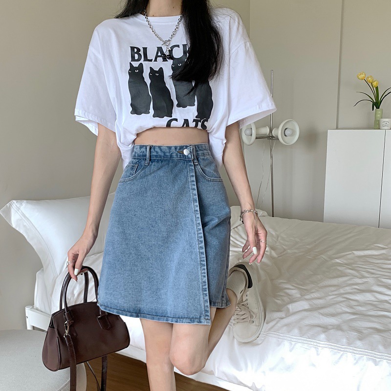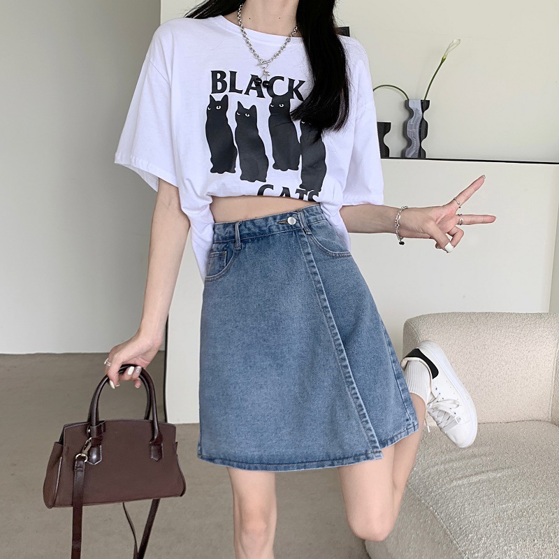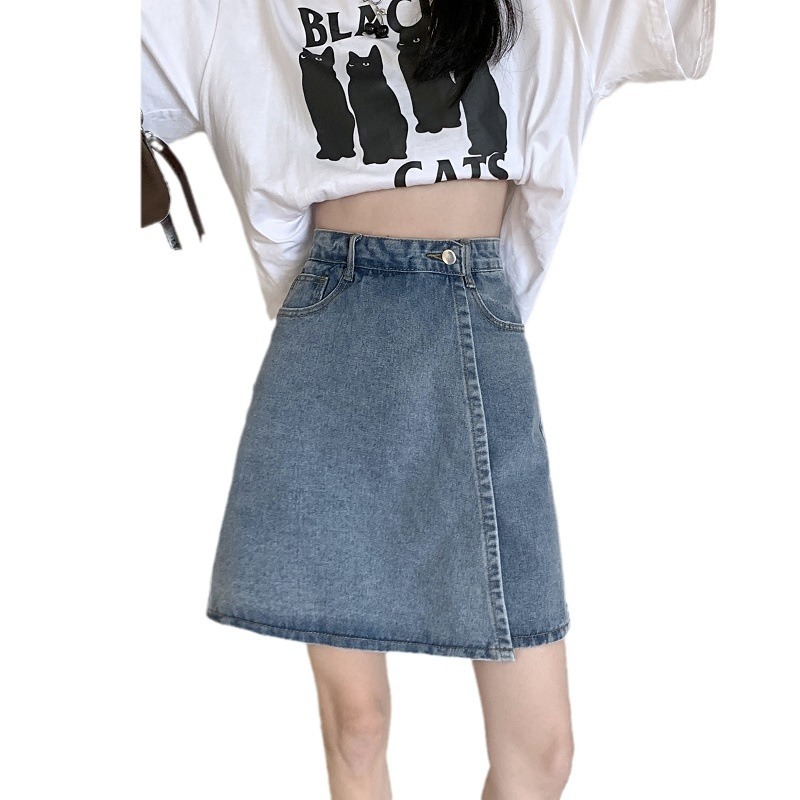 大码高腰显瘦a字牛仔短裤女夏季胖妹妹小个子薄款假两件五分裤裙