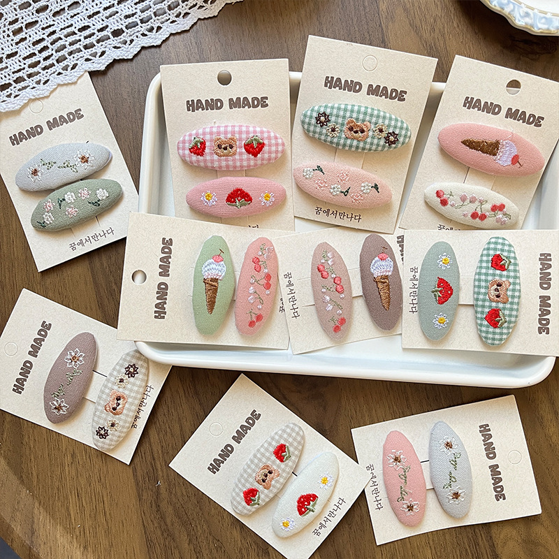 韩系新款刺绣布艺彩色花朵爱心动物BB夹甜美碎花女孩刘海边夹发饰