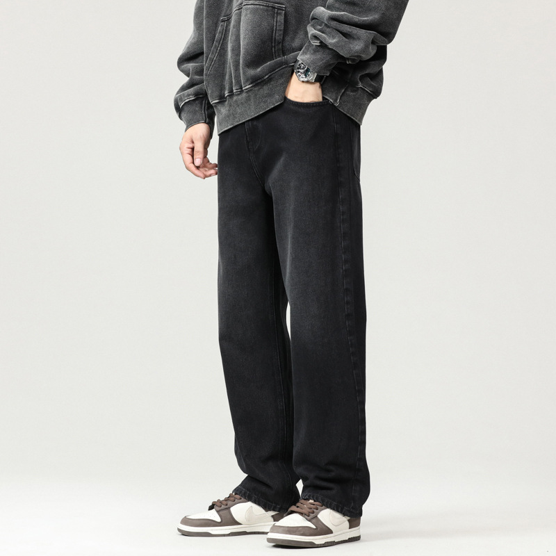 黑色牛仔裤男款春秋季美式高街水洗做旧复古男裤耐磨宽松直筒裤子