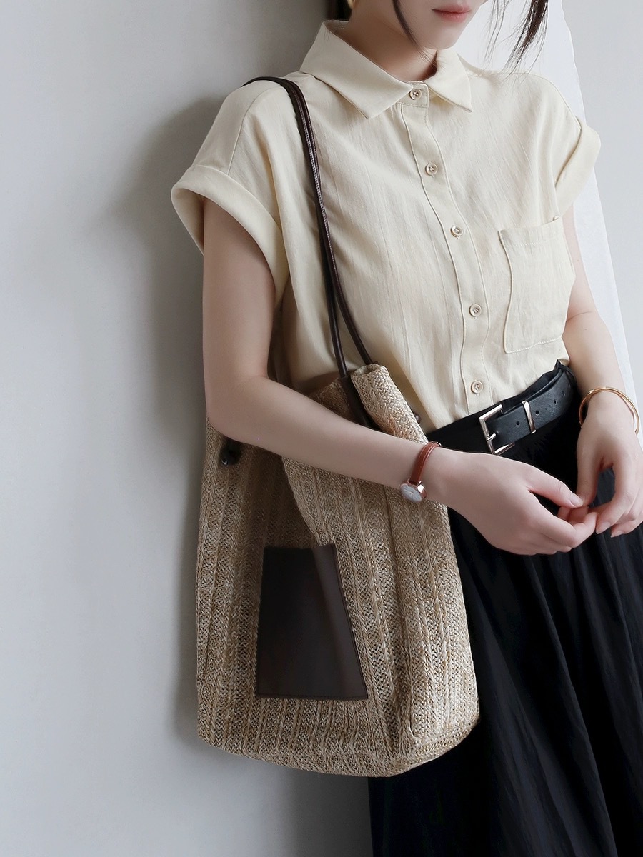 简约牛耳袖设计感夏季新款短袖透气舒适白色衬衫女上衣