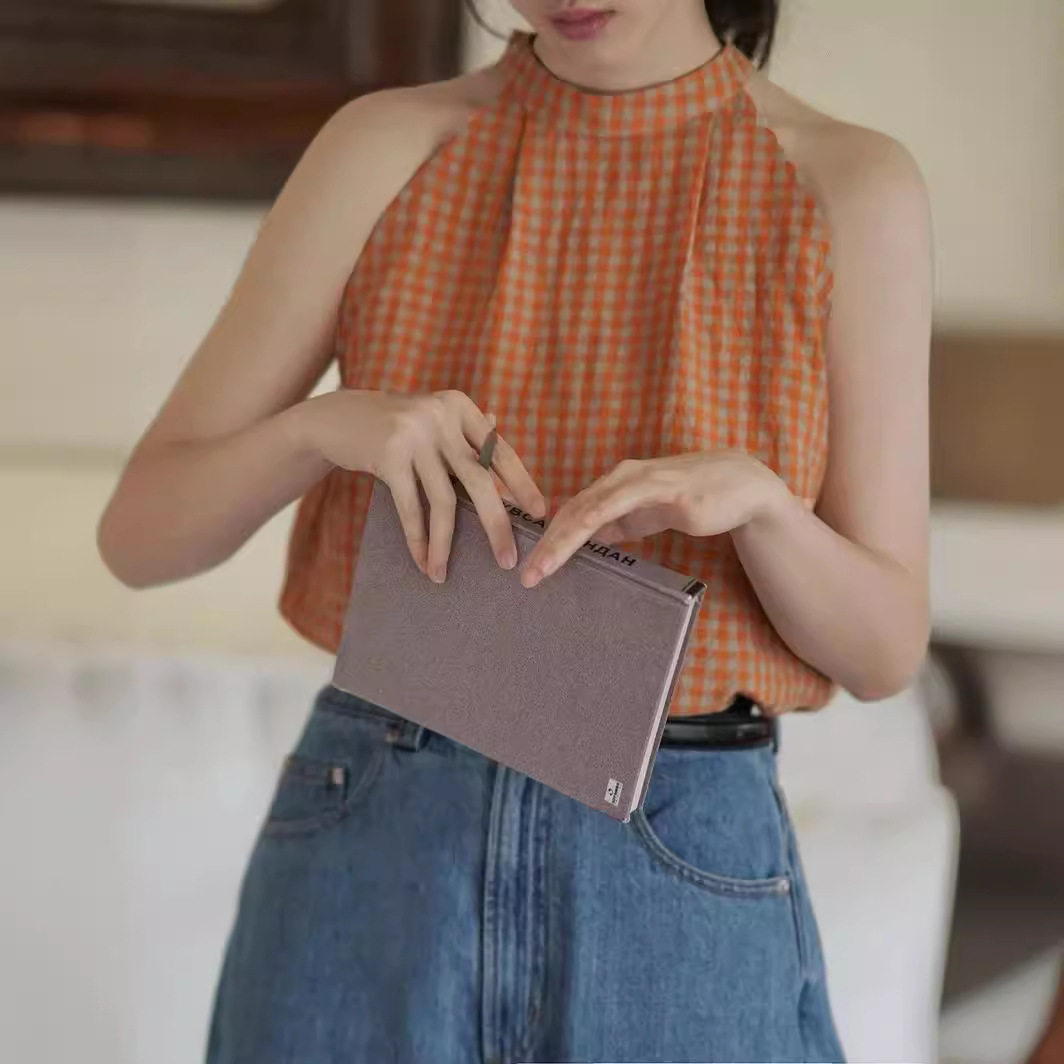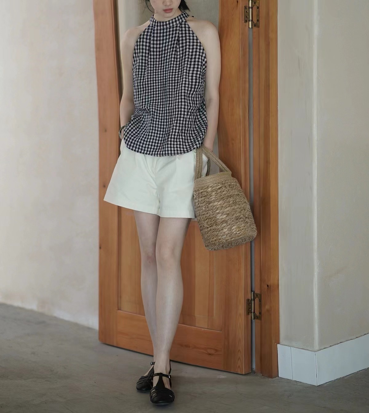 ‘剑桥走廊’苎麻色织格纹系脖上衣背心无袖衬衫