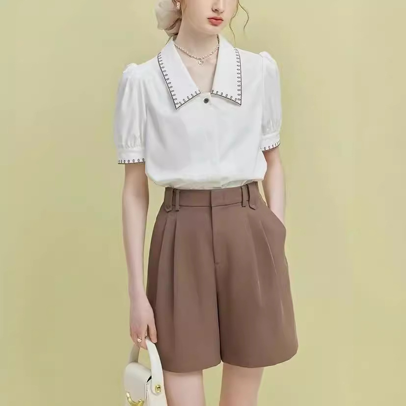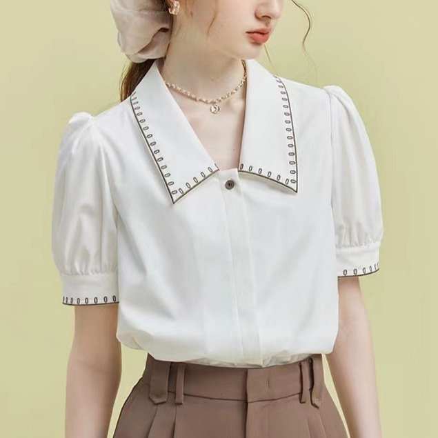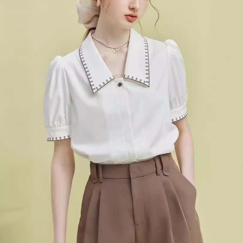 白色职业短袖衬衫女夏季新款正装面试衬衣