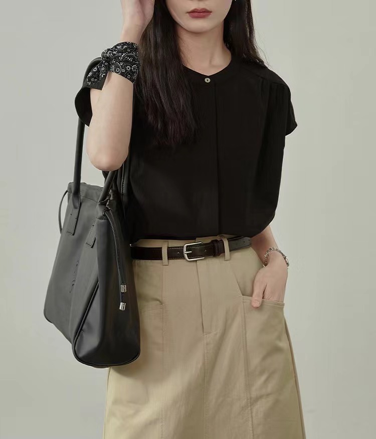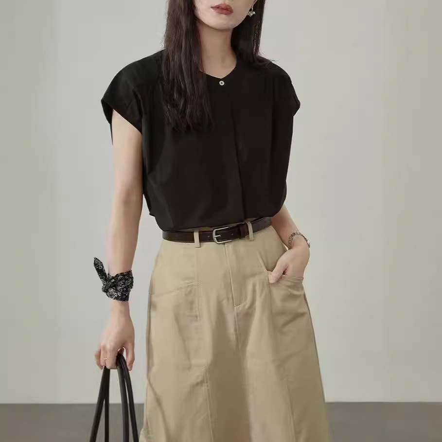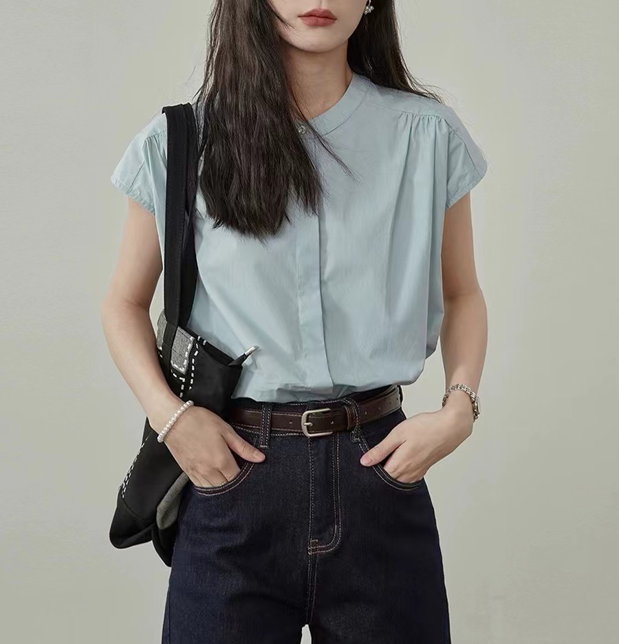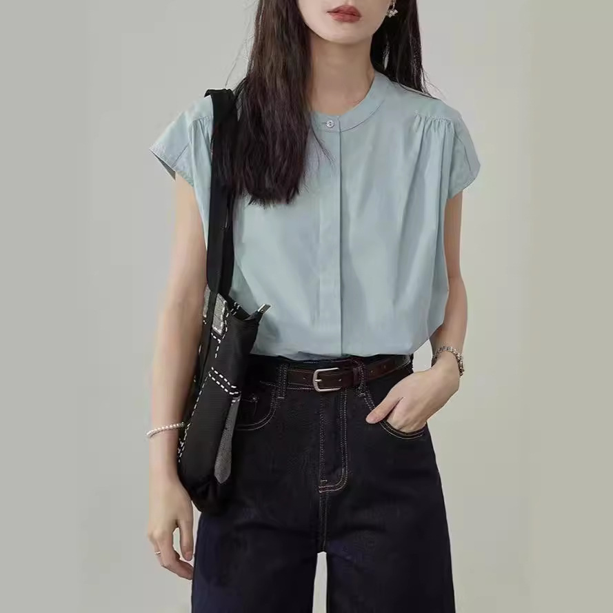 蓝色无袖衬衫女年夏季新款薄款百搭设计感小众上衣