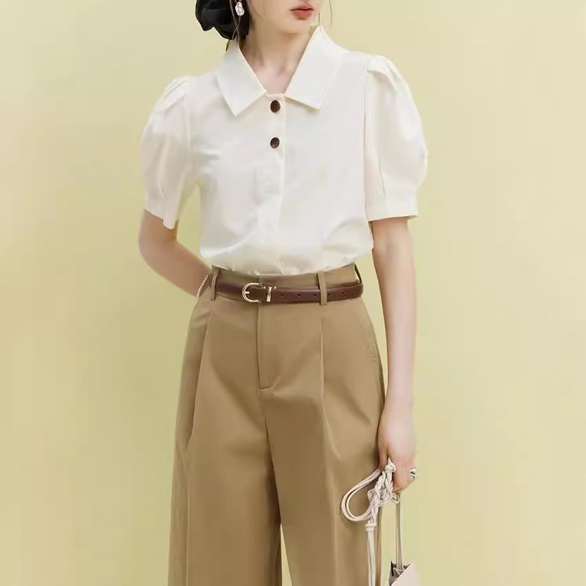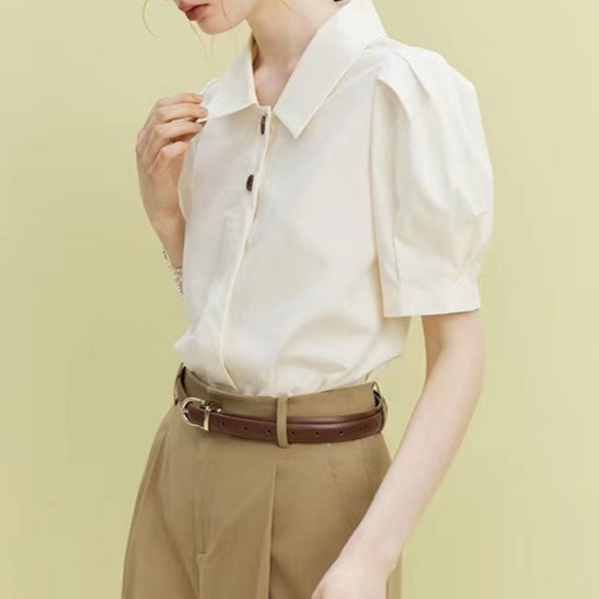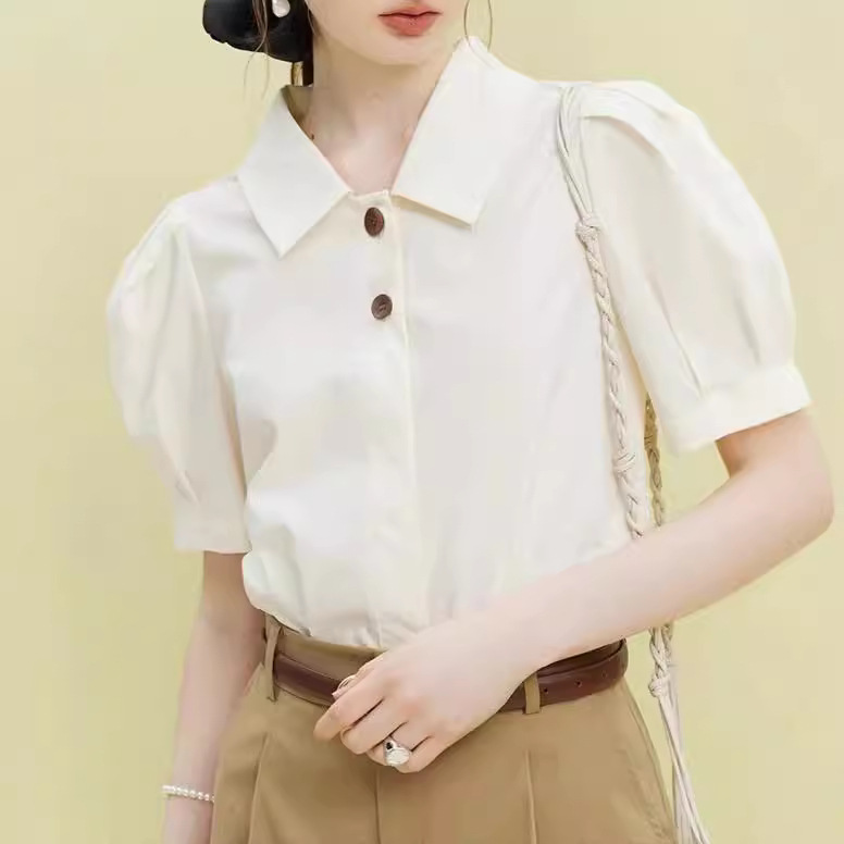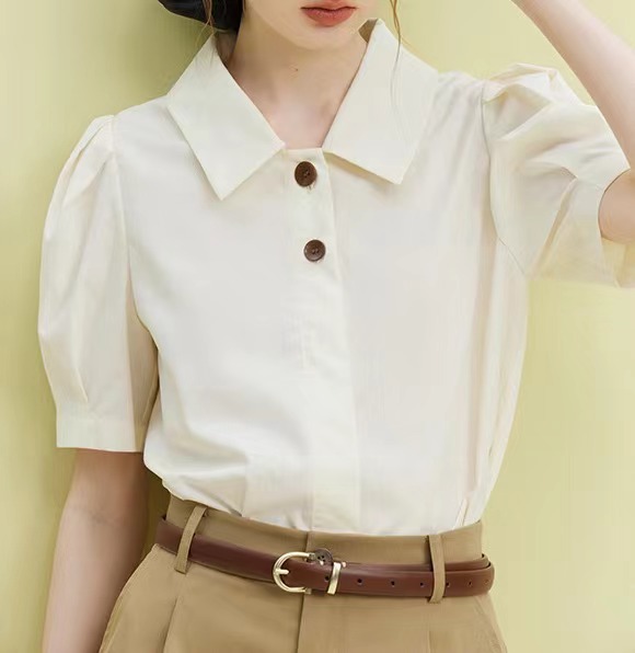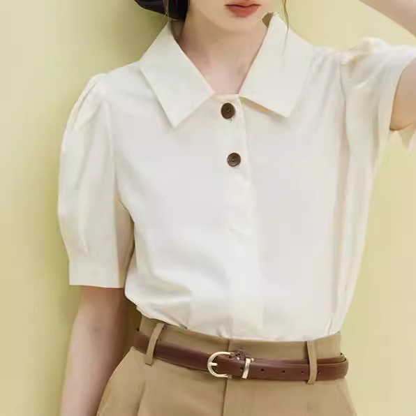 法式百搭减龄撞色扣衬衫女夏新款设计感俏皮短袖衬衣