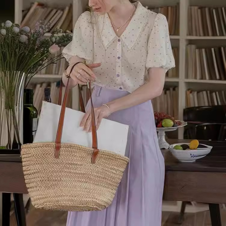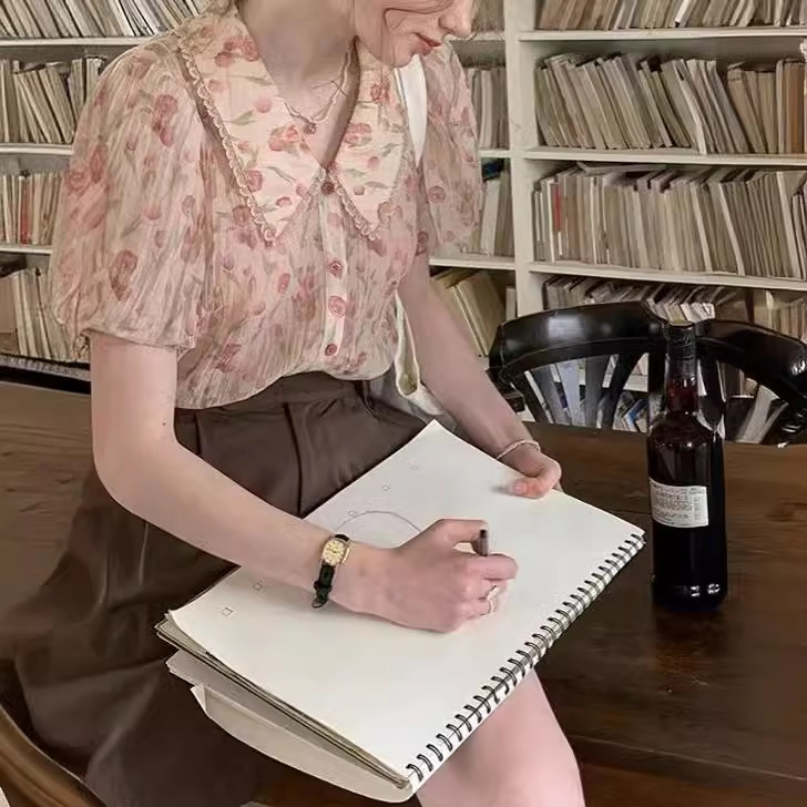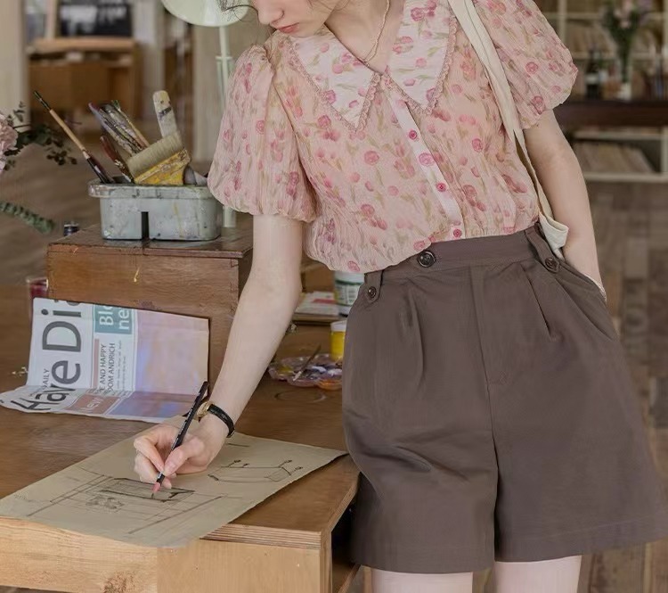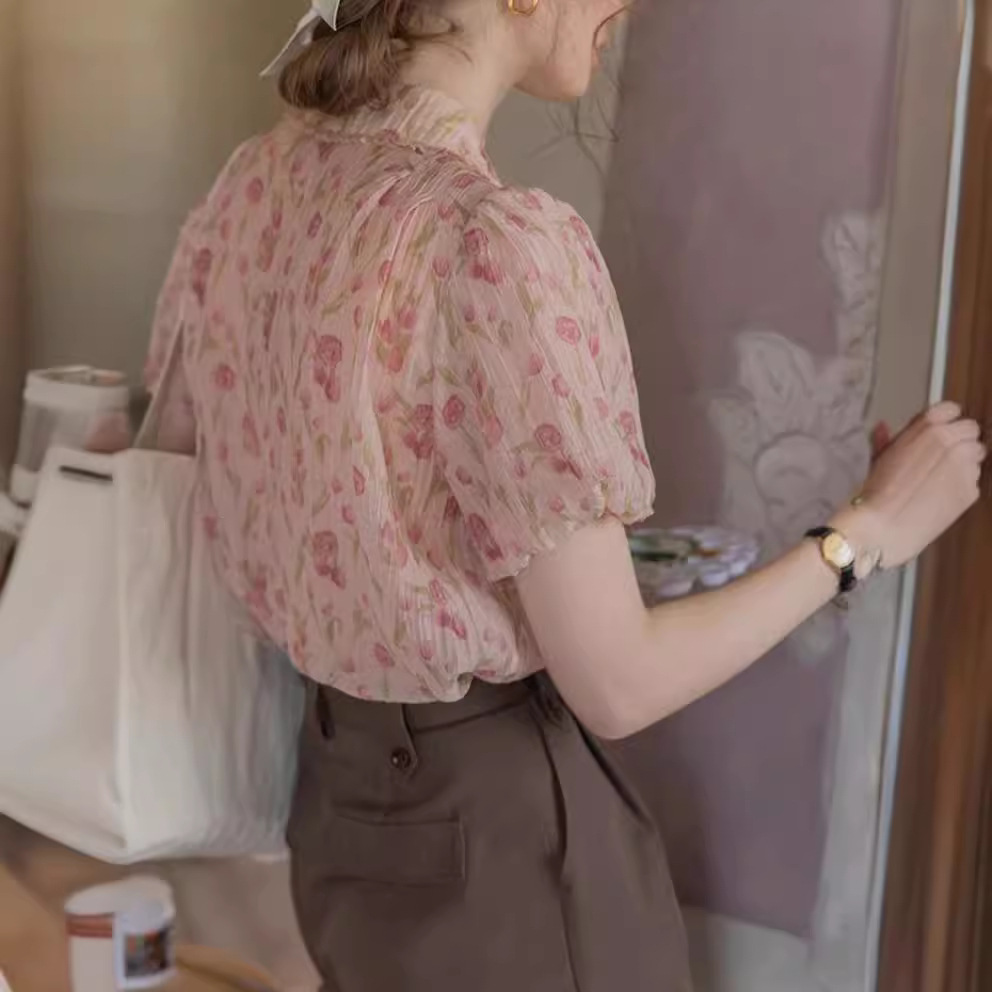 轻盈感法式泡泡袖翻领衬衫女上衣