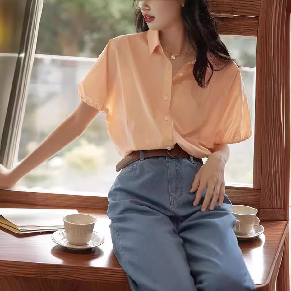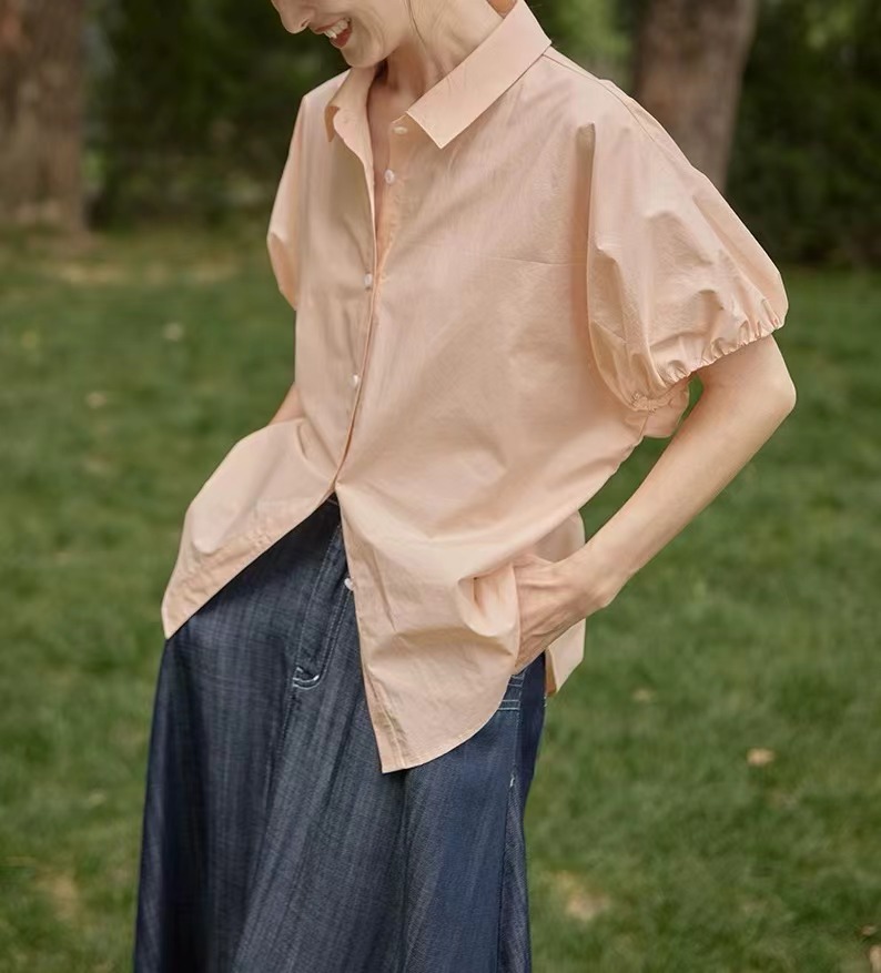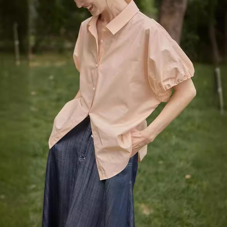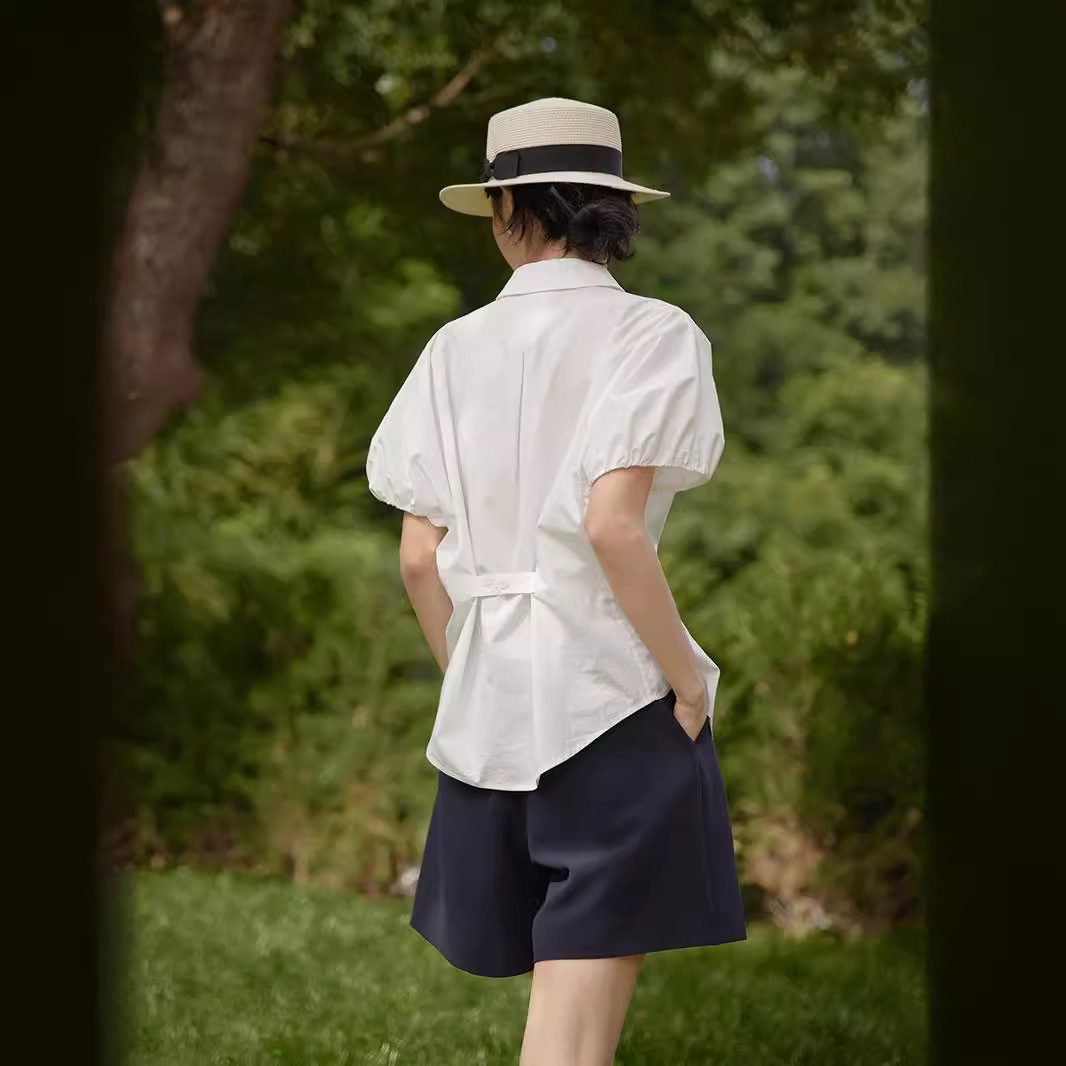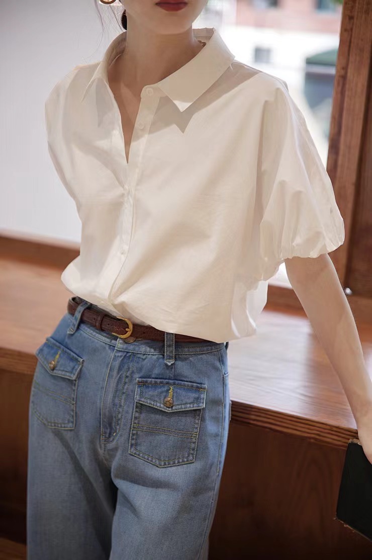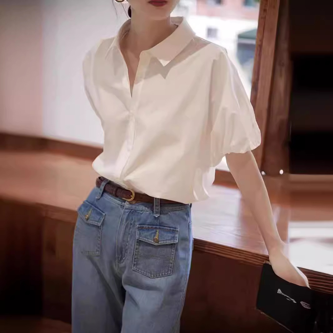 法式白色衬衫夏新款复古设计感泡泡袖别致上衣女