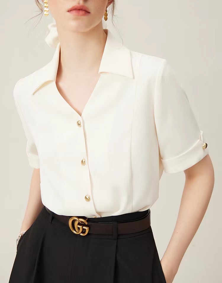 法式慵懒感短袖衬衫女夏新款设计感上衣