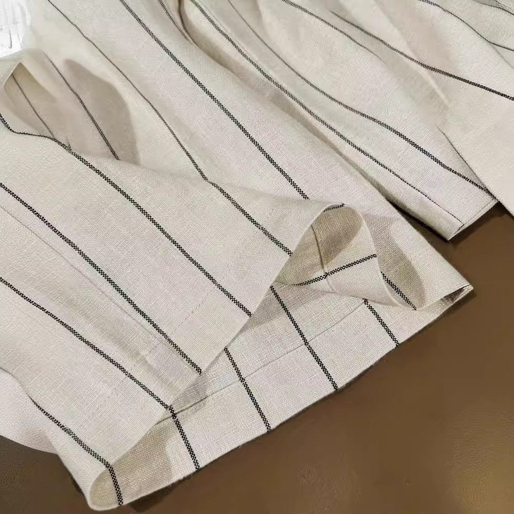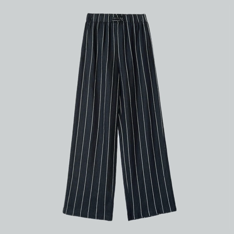 亚麻休闲裤女年新款夏季薄款裤子宽松大码显瘦条纹直筒阔腿裤