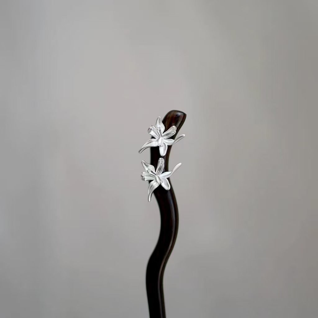 【银色鸢尾花】天然黑檀木花朵盘发簪子古风实木古典旗袍简约百搭