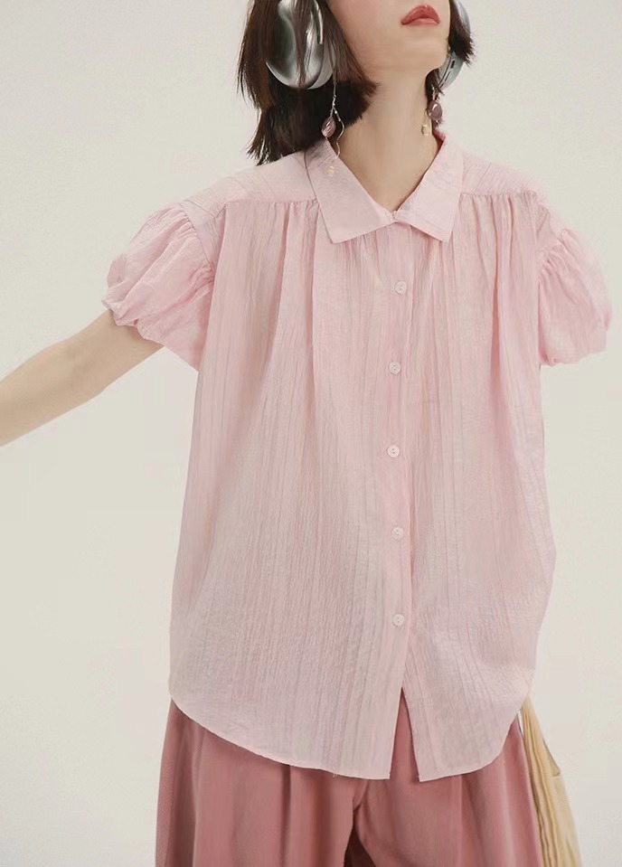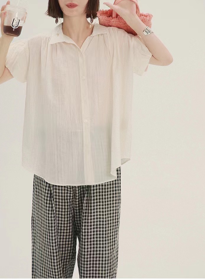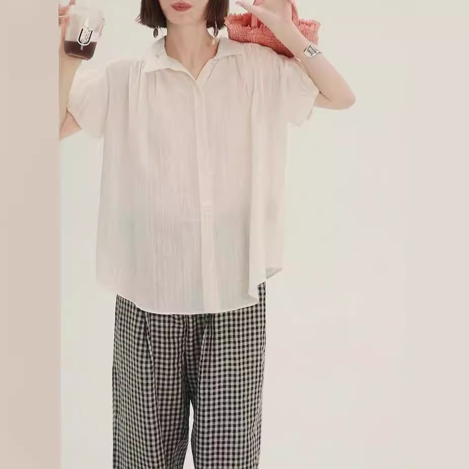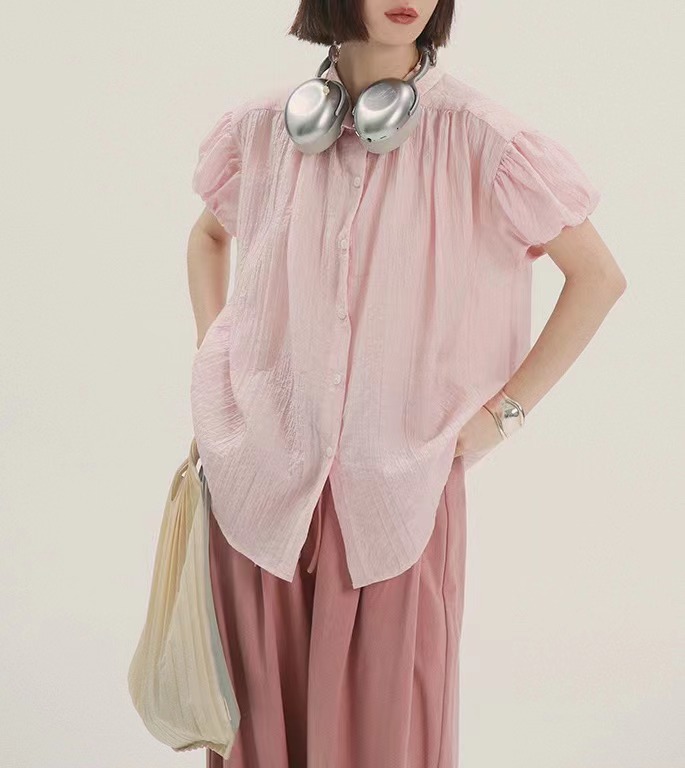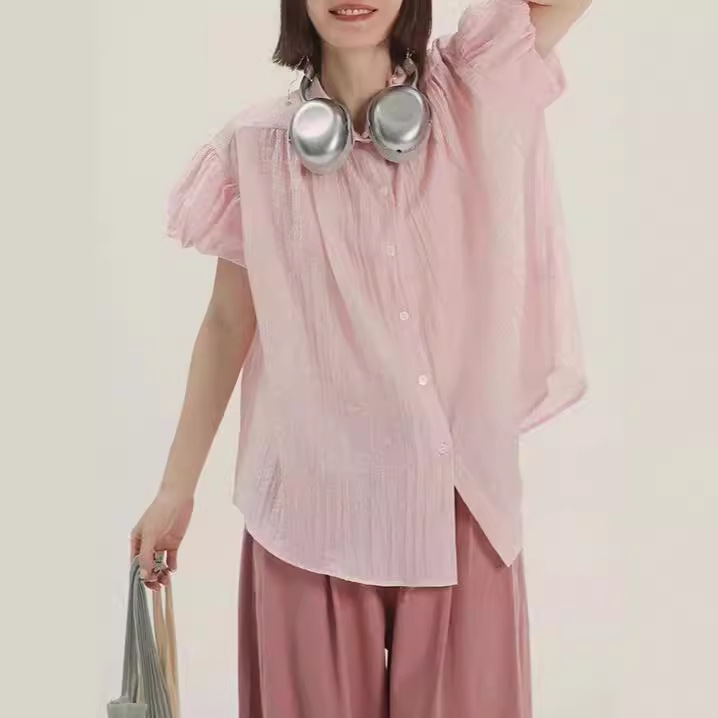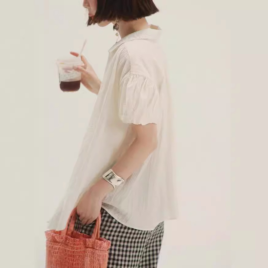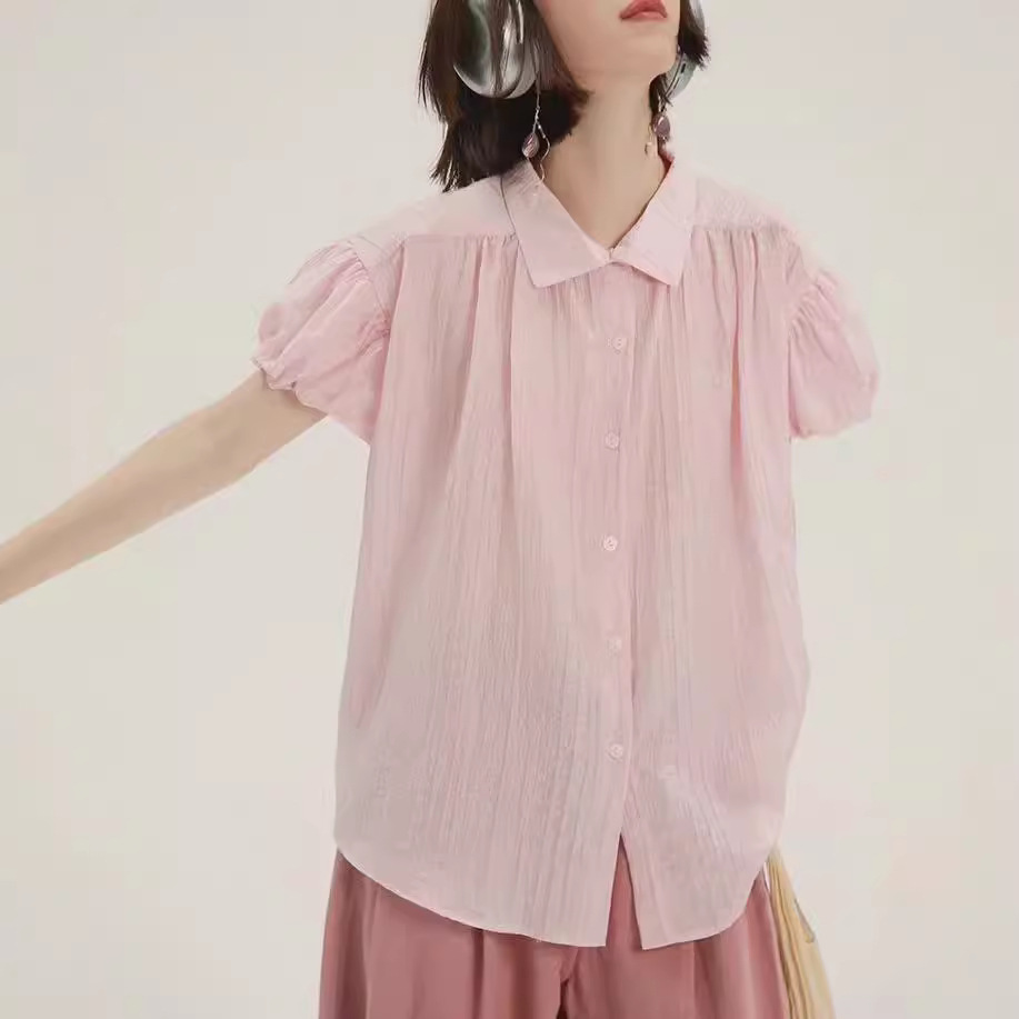 云朵袖褶皱肌理感衬衫女夏季文艺温柔风轻薄垂感上衣