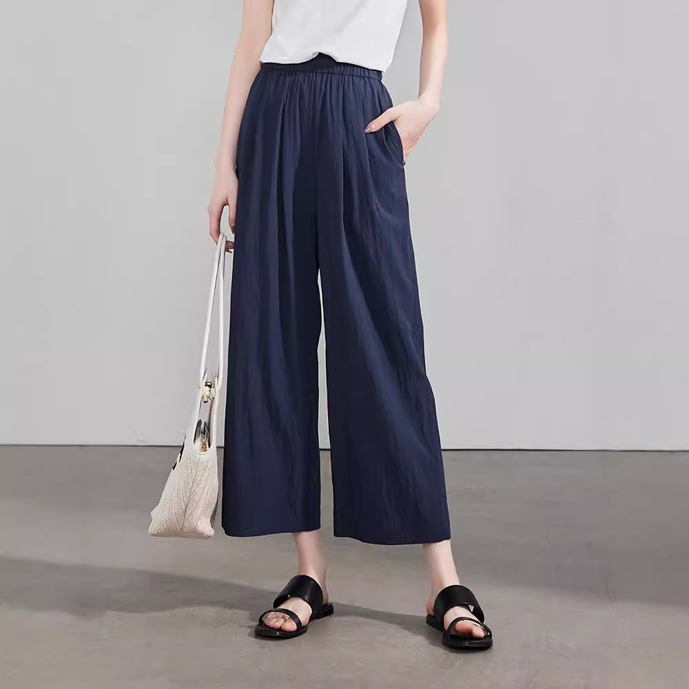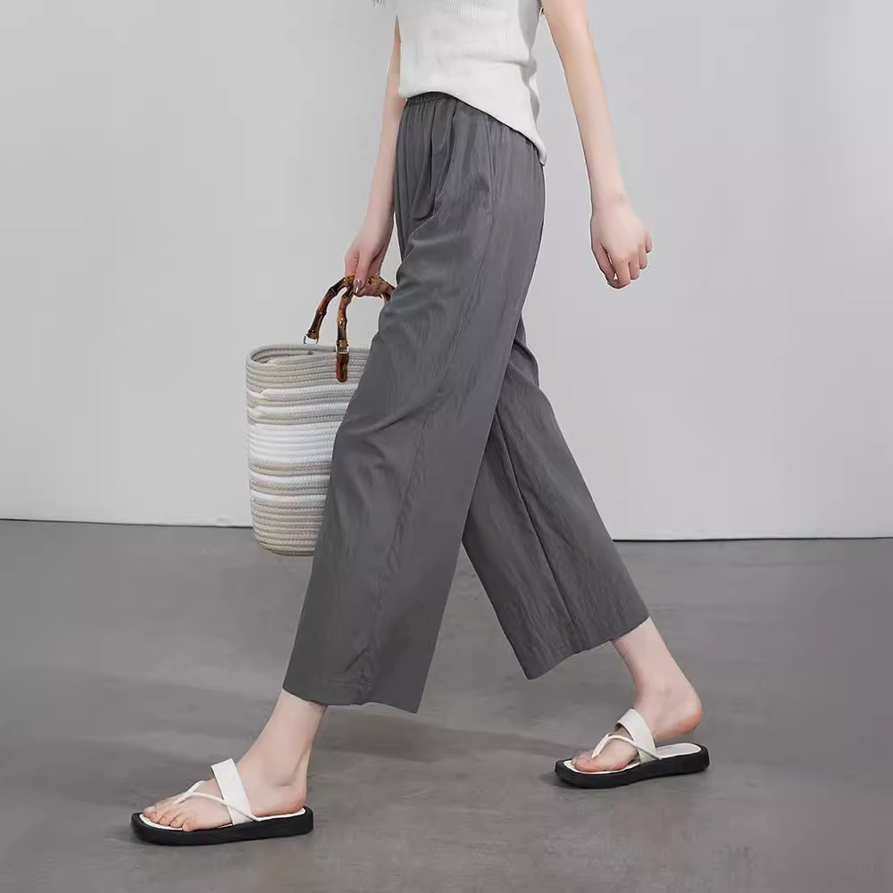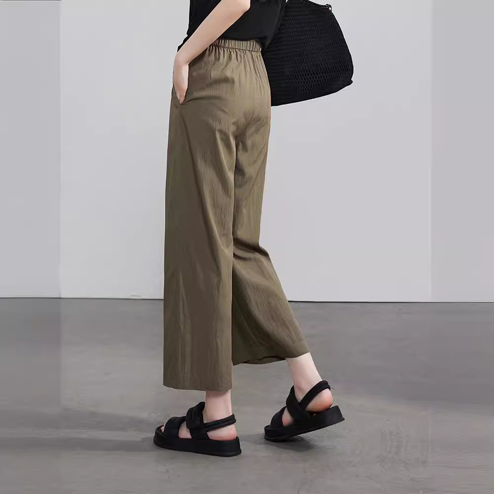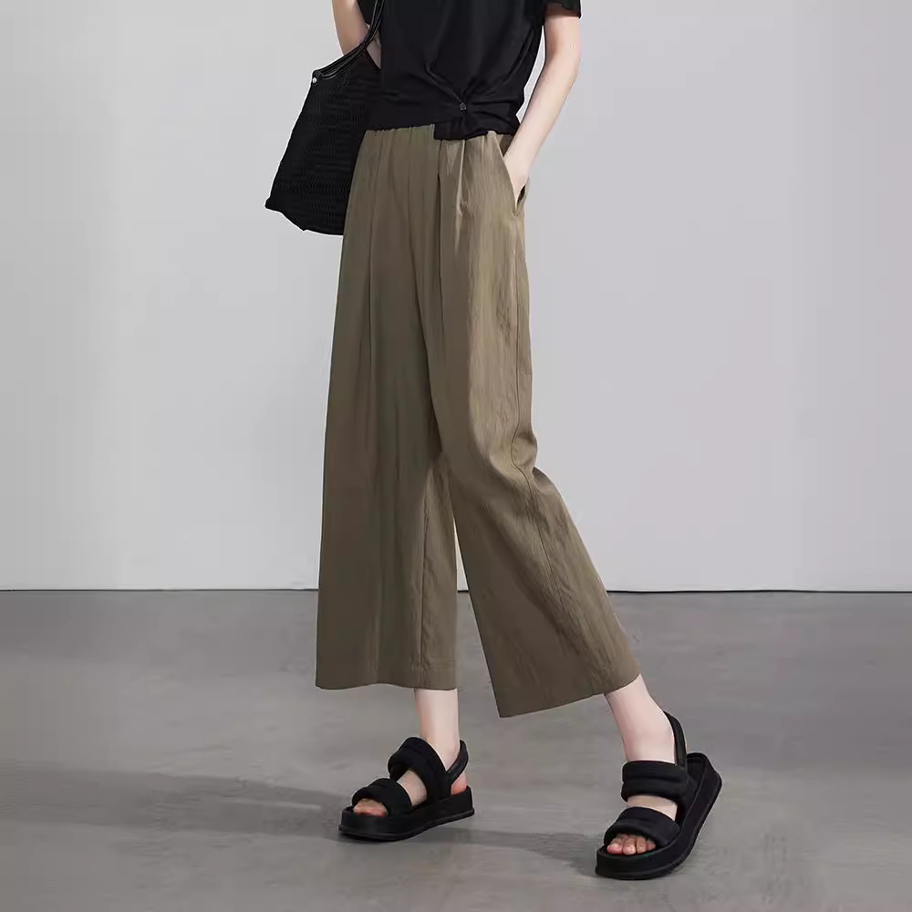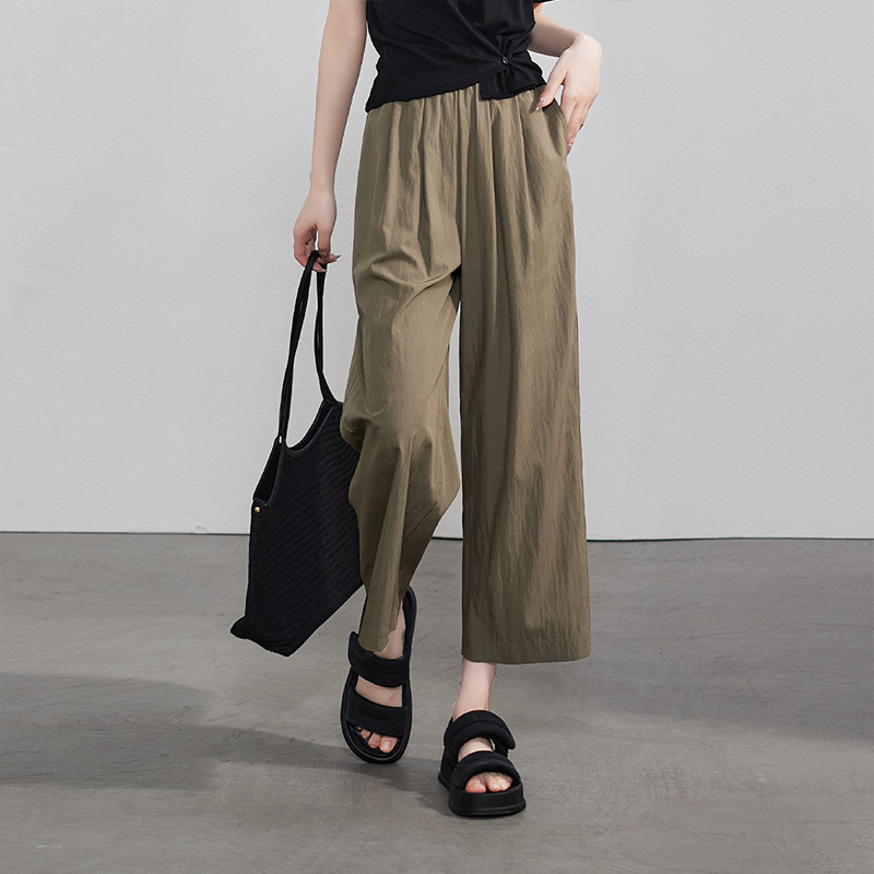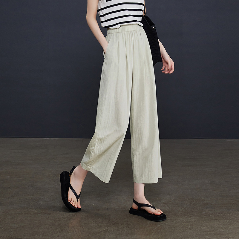 日系宽松百搭松紧腰皱感夏季新款九分休闲阔腿山本裤女薄款白