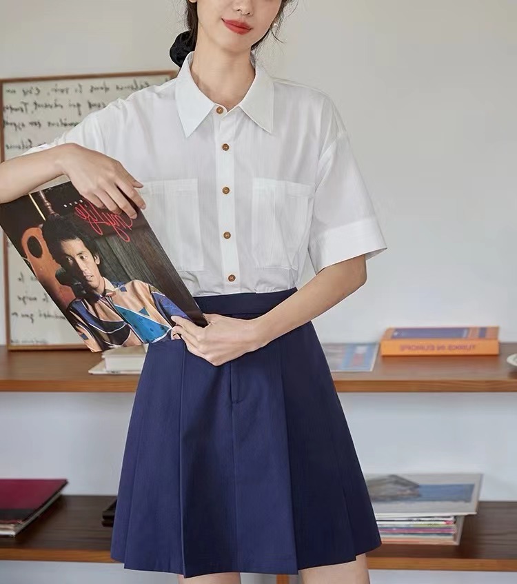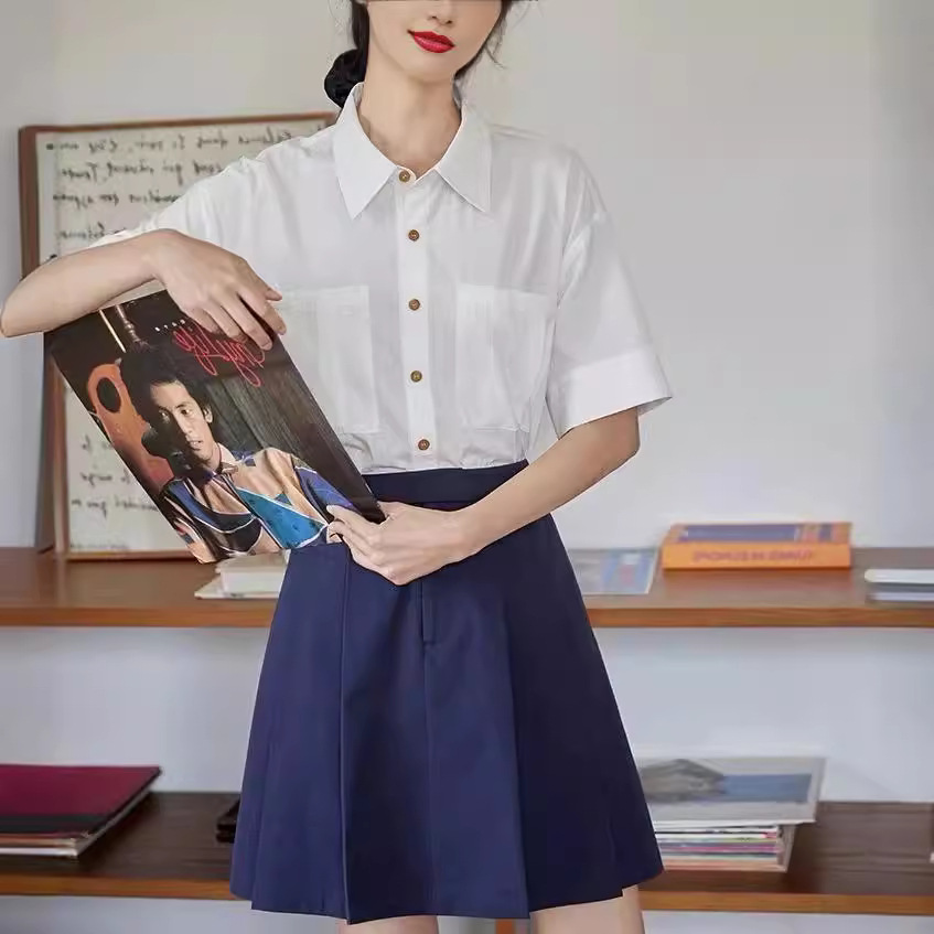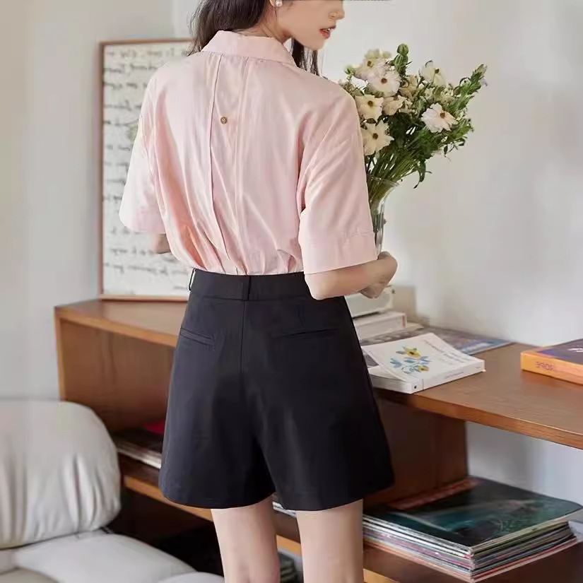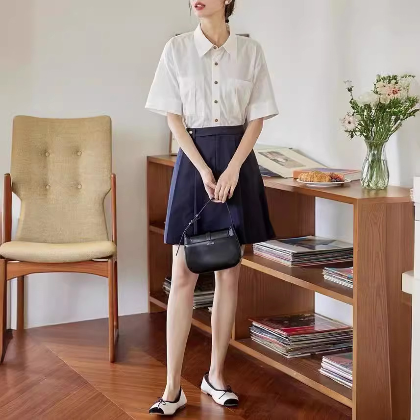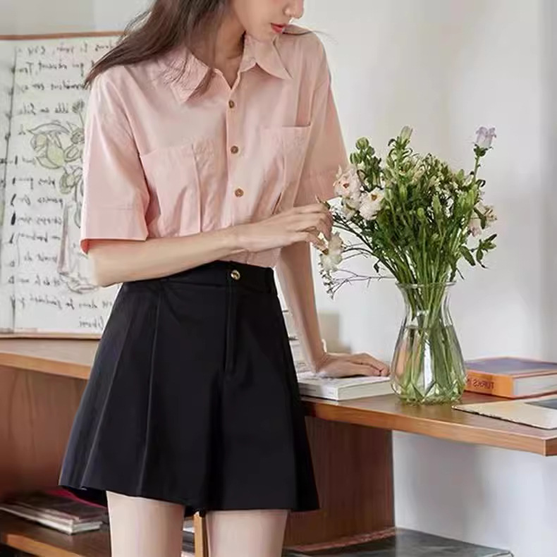 法式复古设计感小众大口袋落肩短袖衬衫女夏新款翻领气质上衣