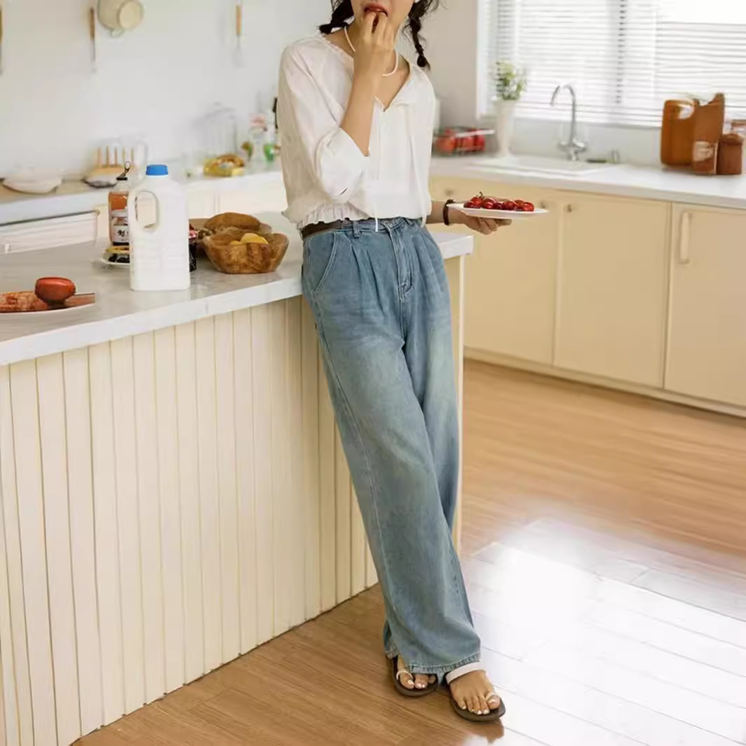 天丝棉质弯刀阔腿裤女2025夏季新款韩系小个子高腰遮跨休闲直筒裤