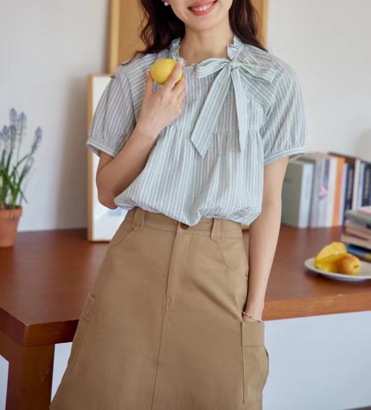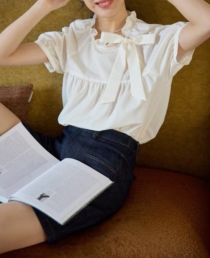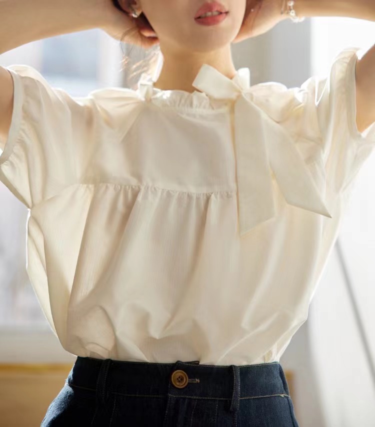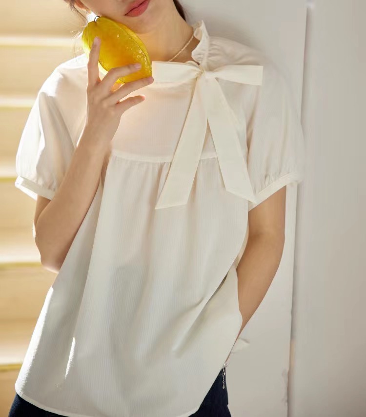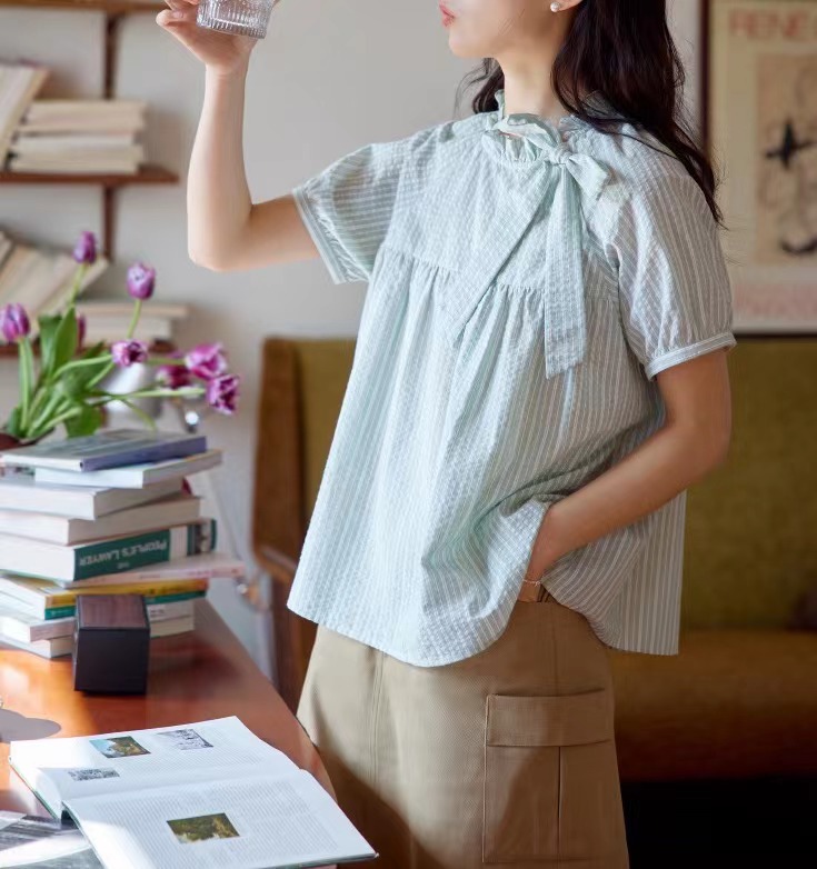 上身显瘦~肌理感衬衫女2025夏季薄款系带设计感遮肉显瘦小衫