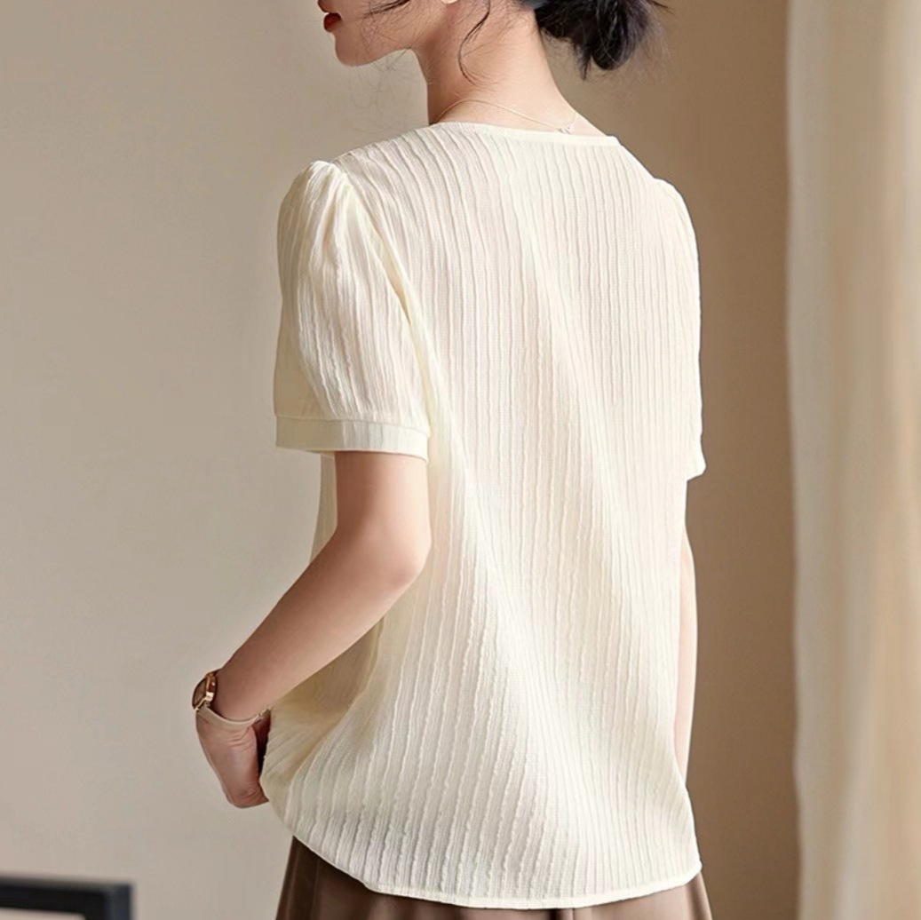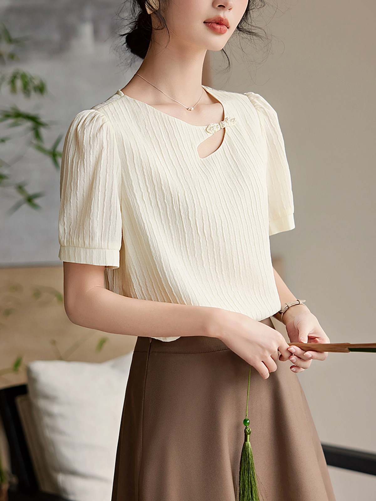 新中式盘扣短袖衬衫女夏季新款时髦别致不规则镂空肌理感上衣