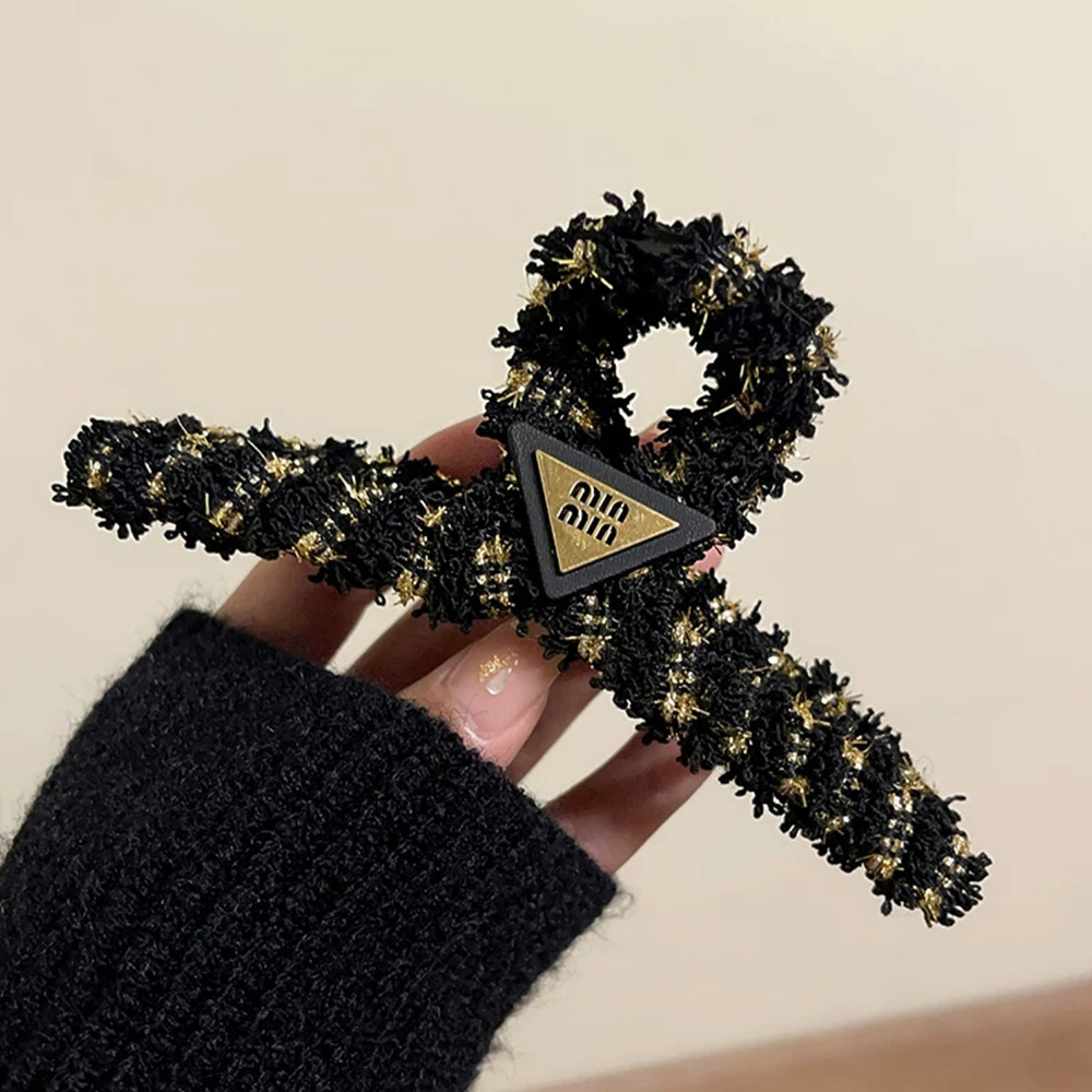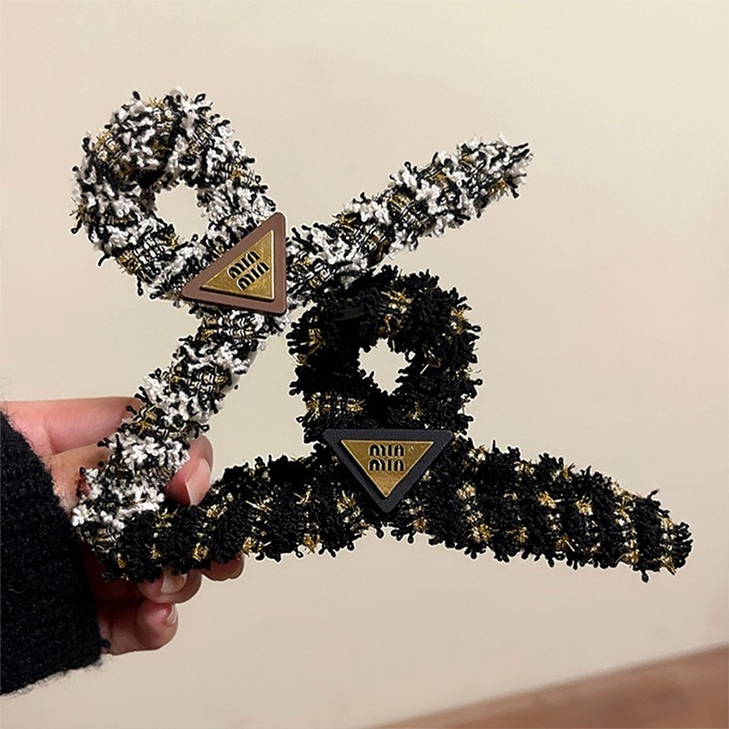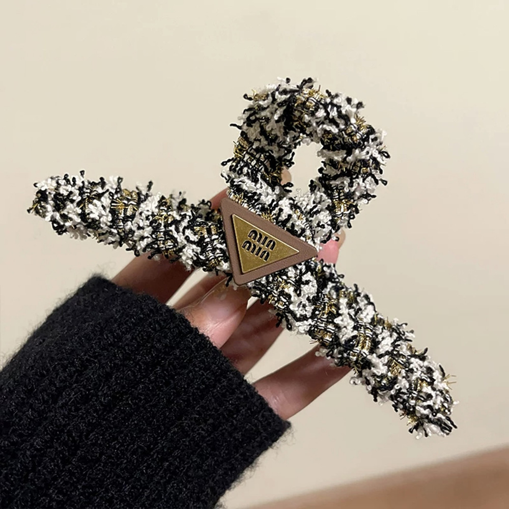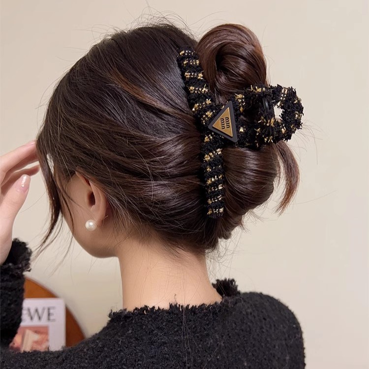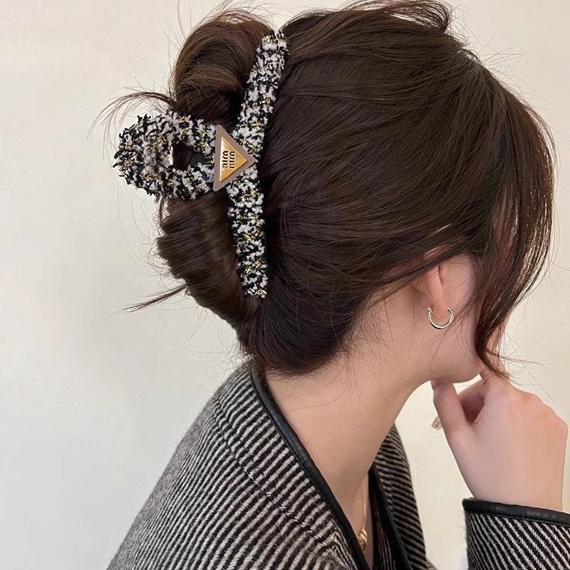 秋冬小香风字母毛绒鲨鱼夹子头饰发卡高级感发夹女后脑勺盘发抓夹