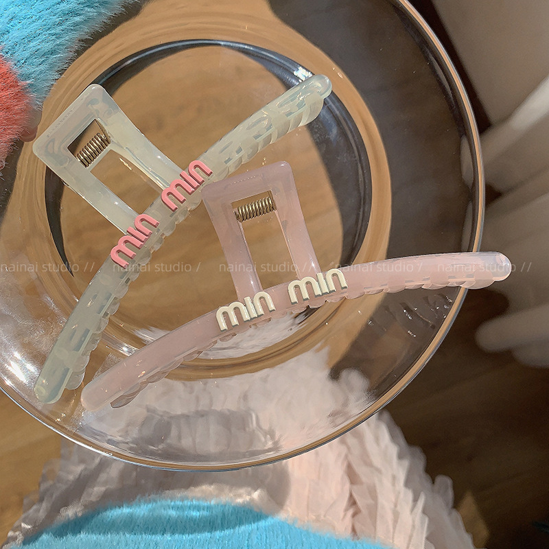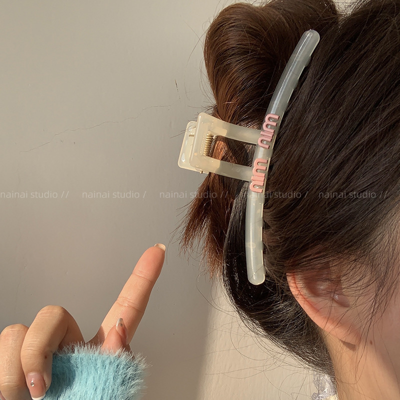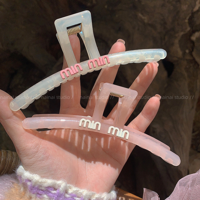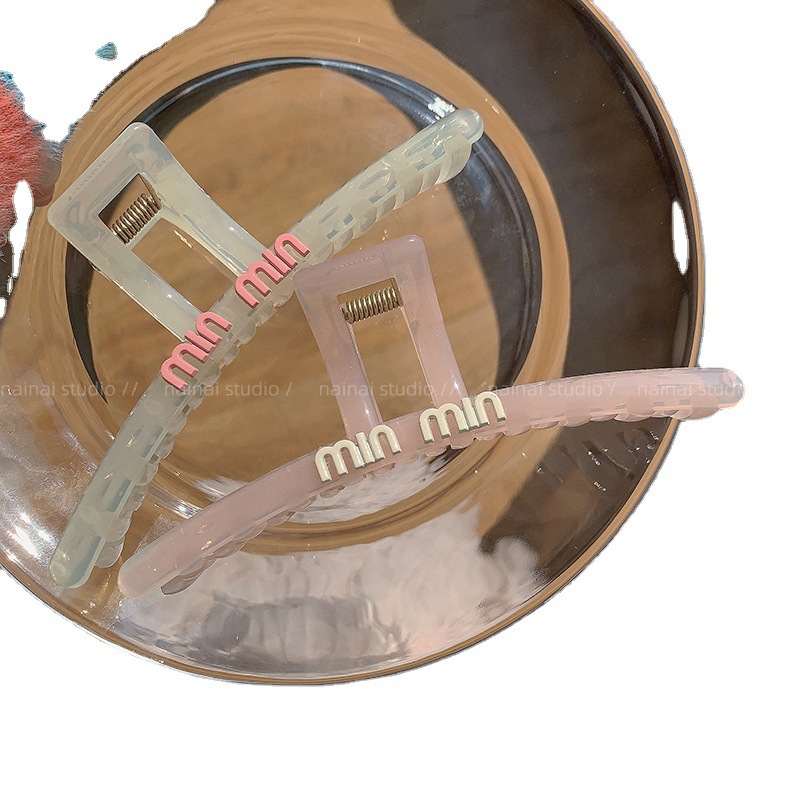 果冻粉色!甜美少女心字母抓夹超大号发量多后脑勺春季新款鲨鱼夹