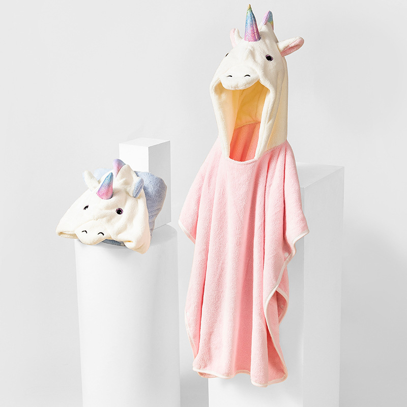 儿童浴巾斗篷婴童卡通浴巾浴袍珊瑚绒吸水婴幼儿披风