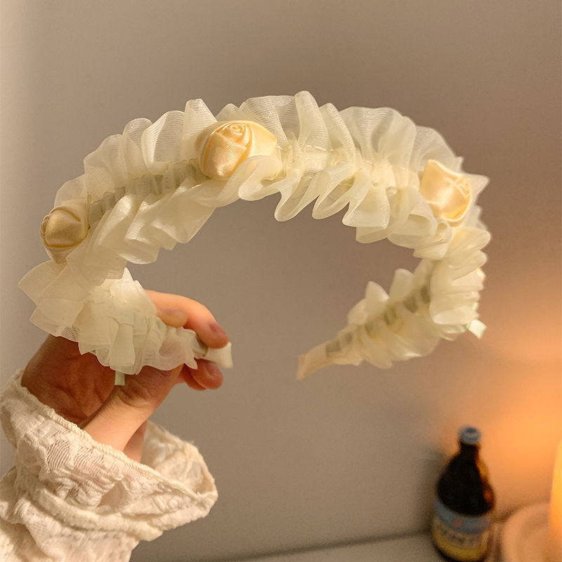 超仙山茶花网纱发箍女春夏季高颅顶高级感百搭压发发卡头箍发饰
