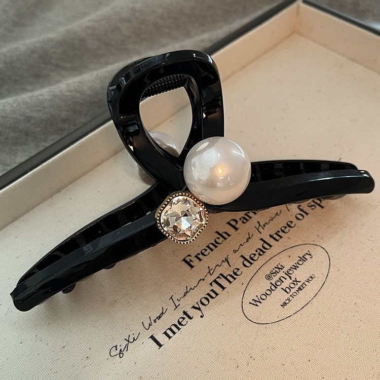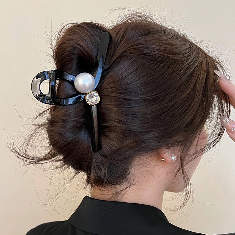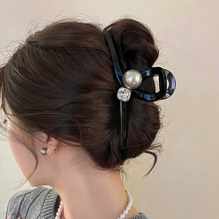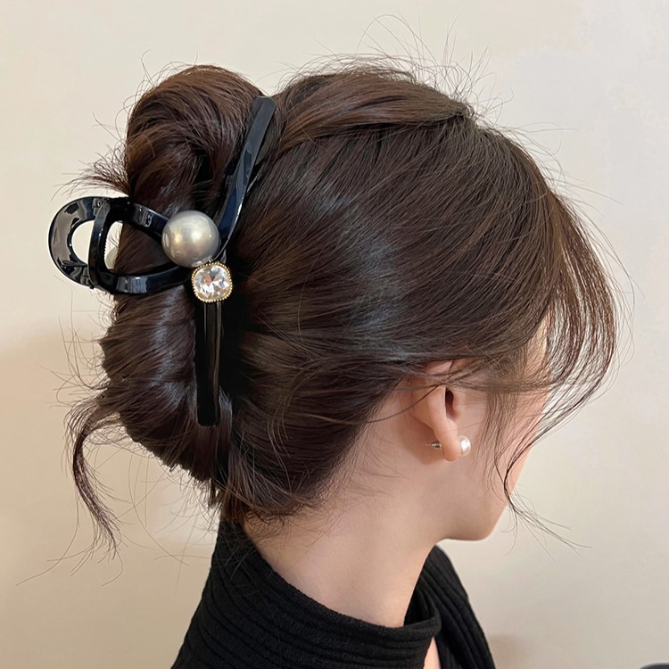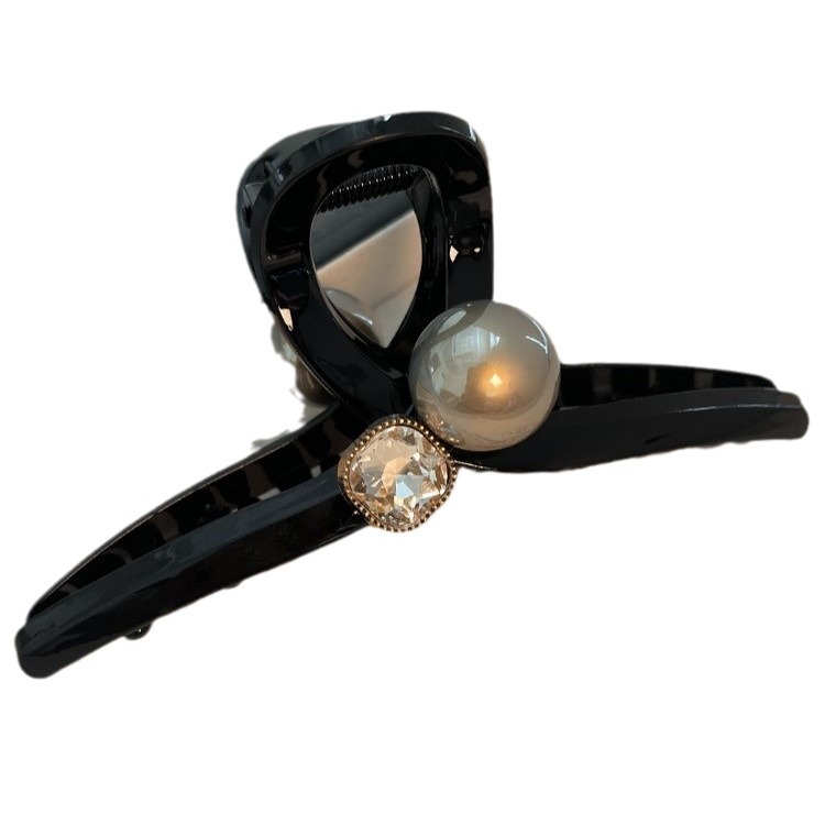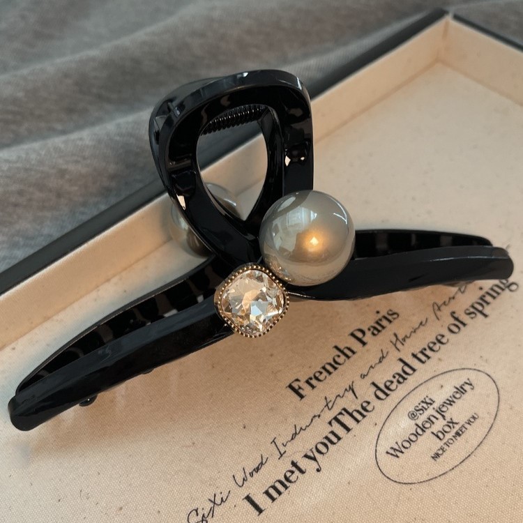 亮面黑色大号珍珠抓夹女高级感鲨鱼夹后脑勺发夹子头饰适合发量多