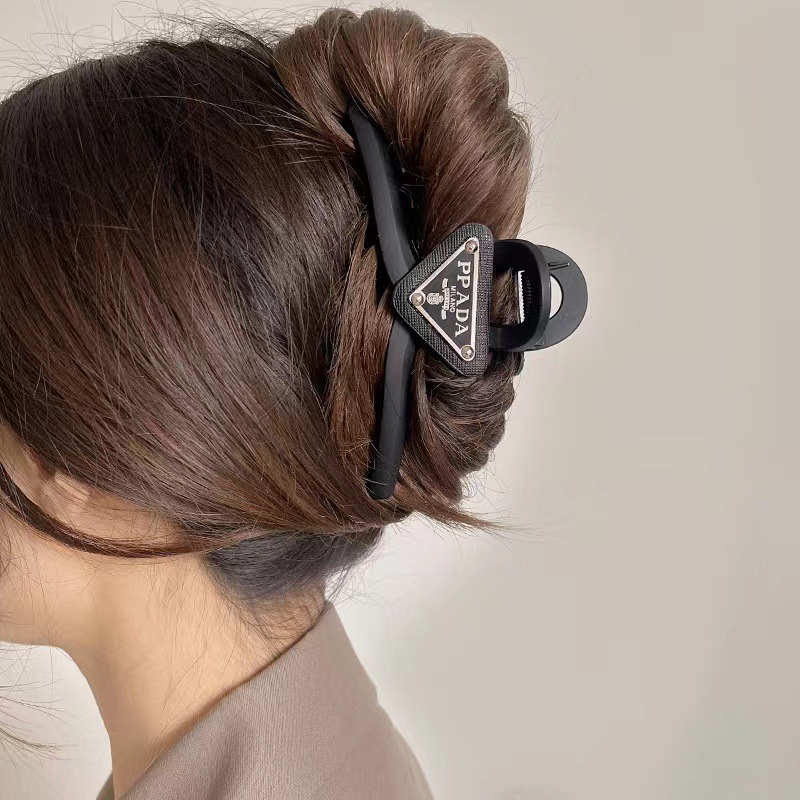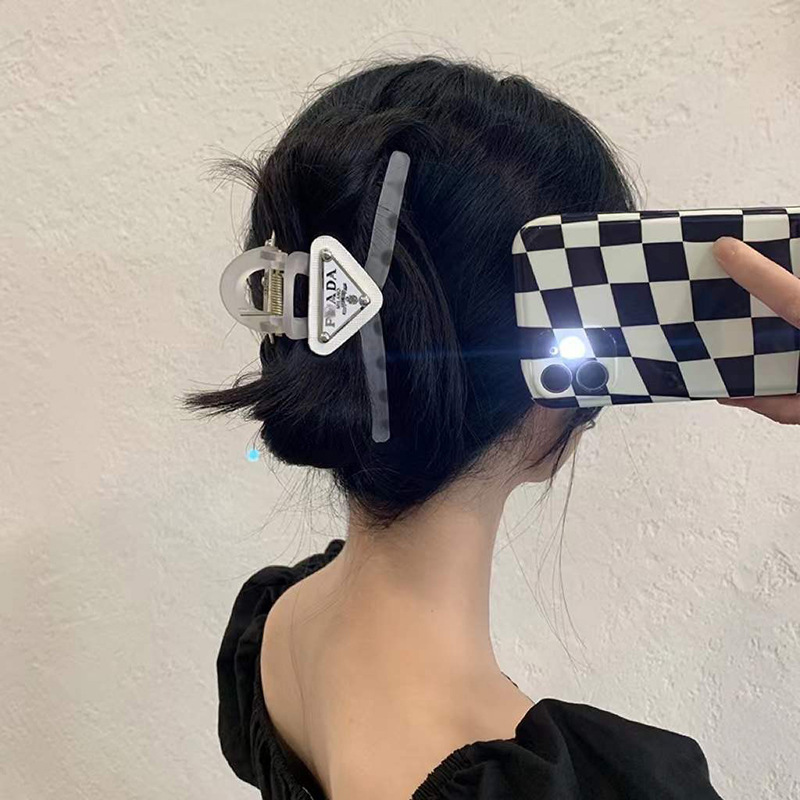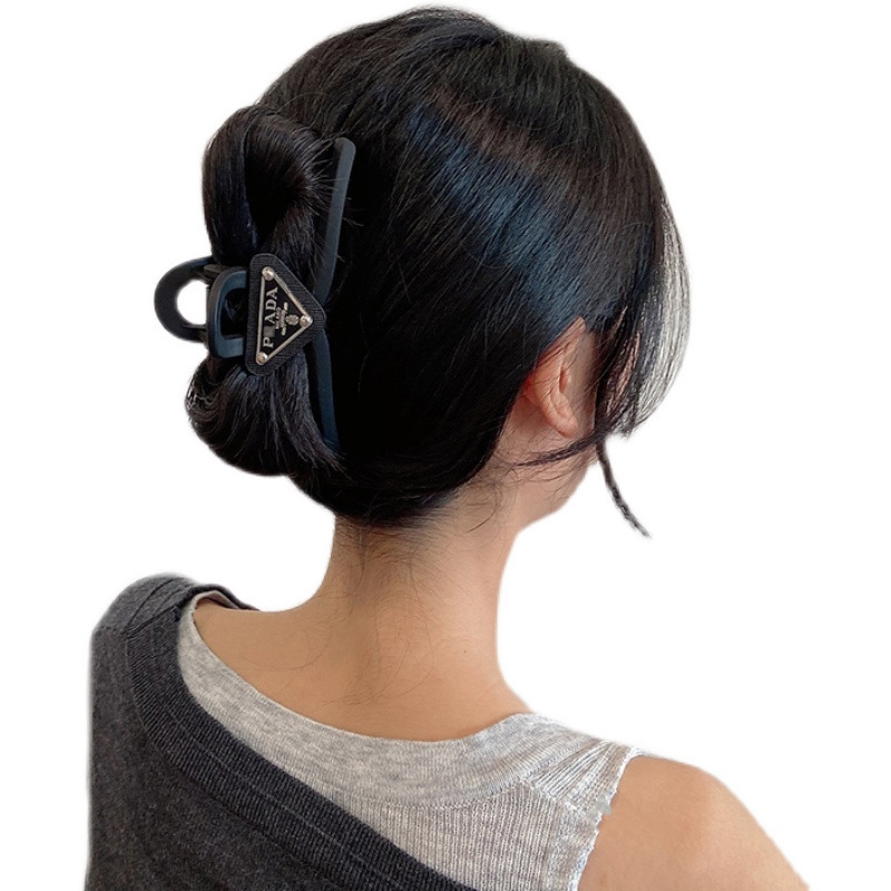 新款高马尾倒三角抓夹大牌P家同款大号黑色发卡网红后脑勺鲨鱼夹