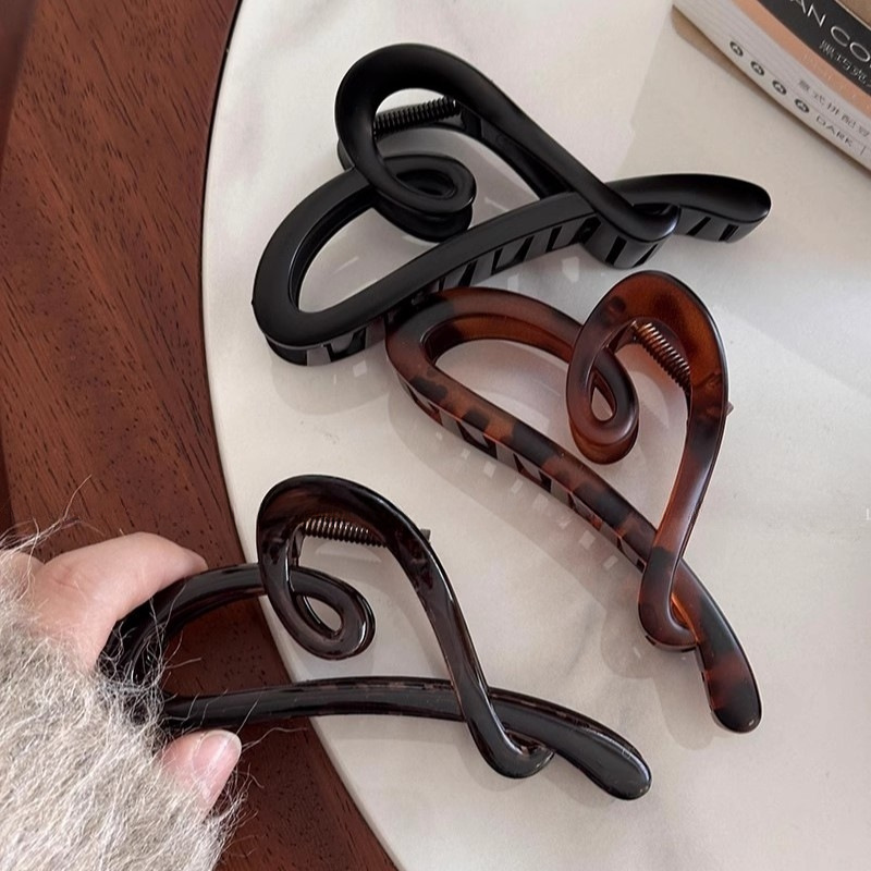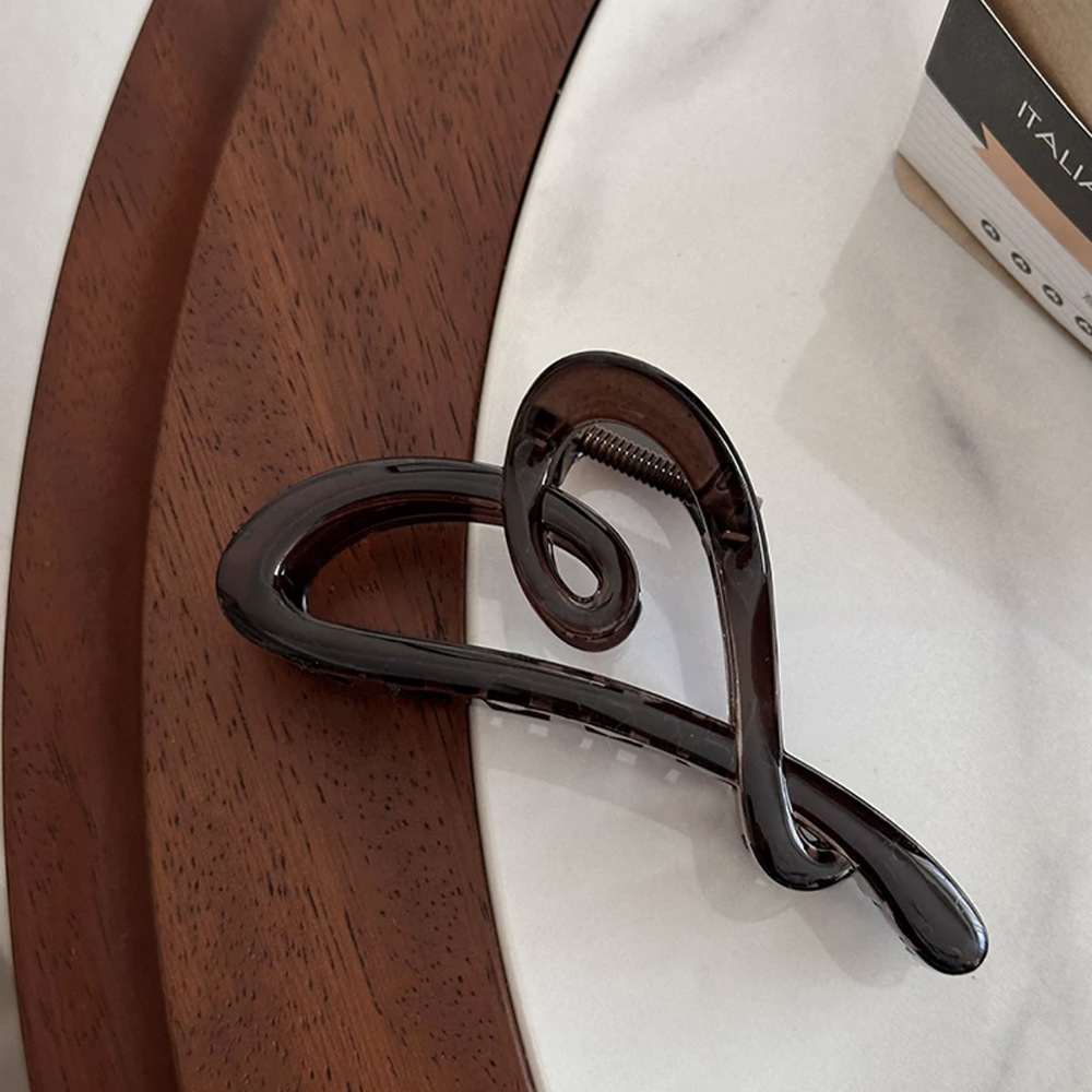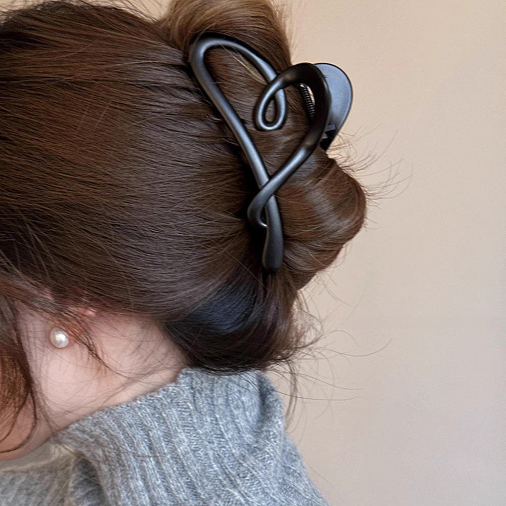 气质哑光黑色爱心抓夹女秋冬后脑勺发夹高级感新款鲨鱼夹头饰