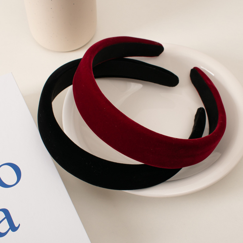 复古酒红丝绒薄海绵发箍女气质黑色洗脸压发头箍批发发箍韩国发饰