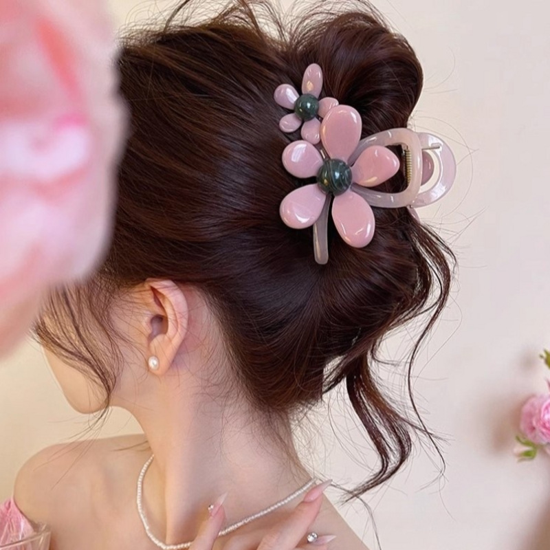 超仙花朵韩系抓夹女新款后脑勺发夹高级感气质鲨鱼夹发饰夏季
