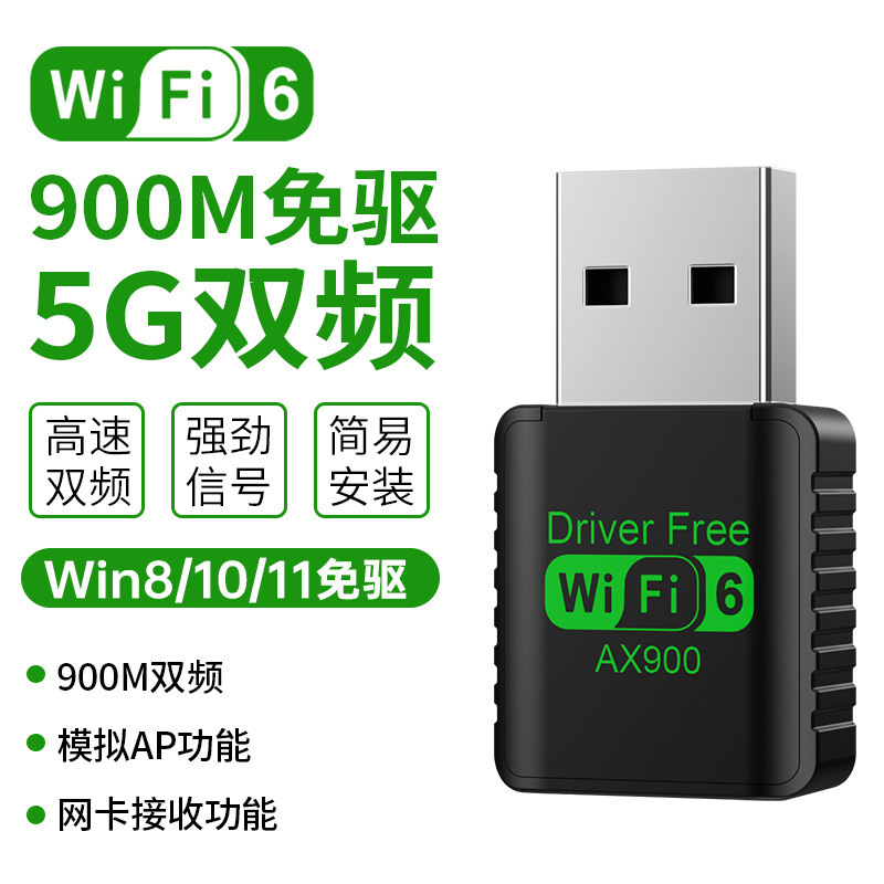 5g双频900M无线网卡WiFi6免驱台式电脑USB网络接收发射器