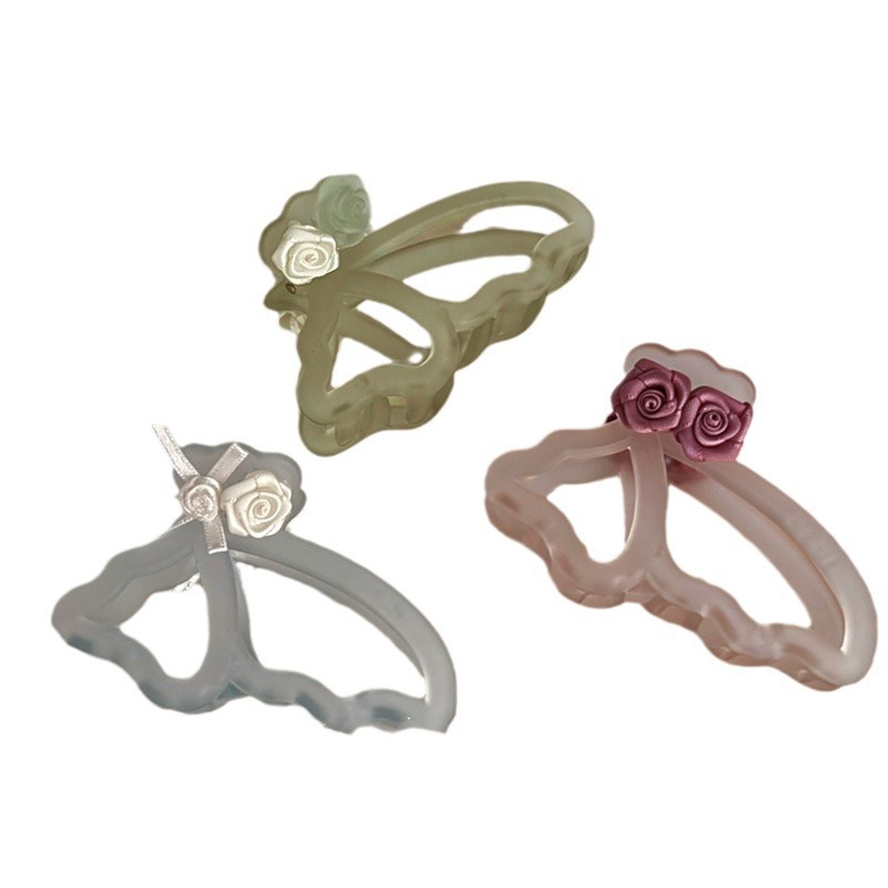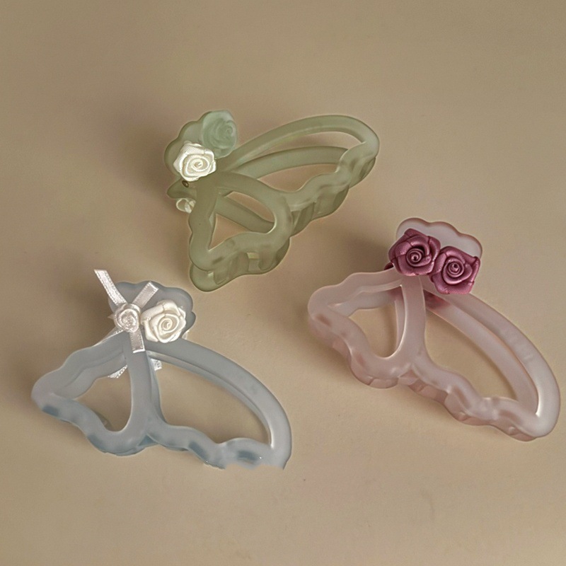 蝴蝶与玫瑰之间夏天的超仙亚克力花朵抓夹 高级感小众气质鲨鱼夹