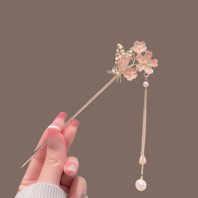 中国风夏天蝴蝶发簪流苏花朵簪子古风汉服发饰高级感盘发头饰发钗