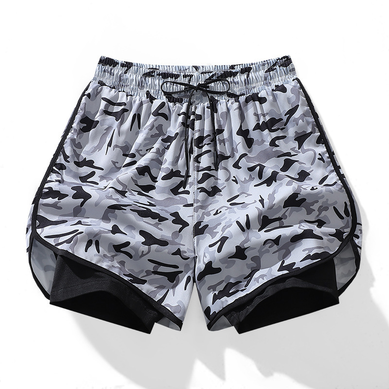 男士泳裤平角双层五分款泳衣套装防尴尬迷彩沙滩裤男游泳装备