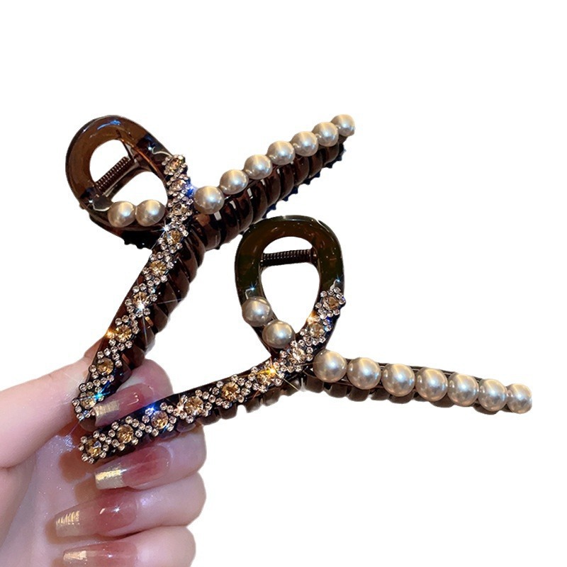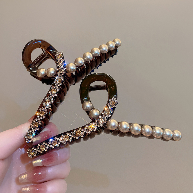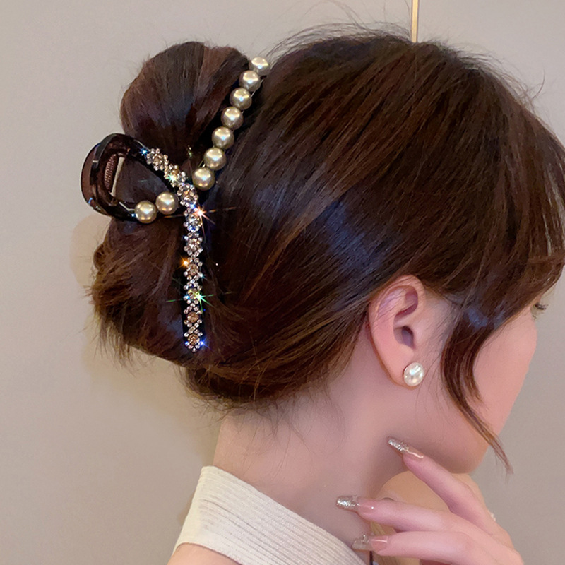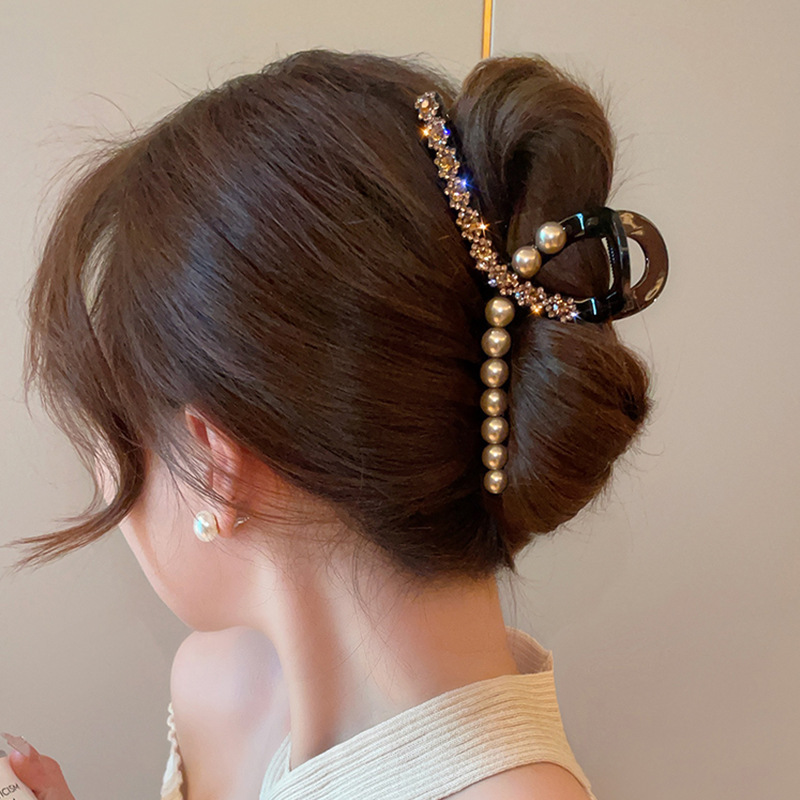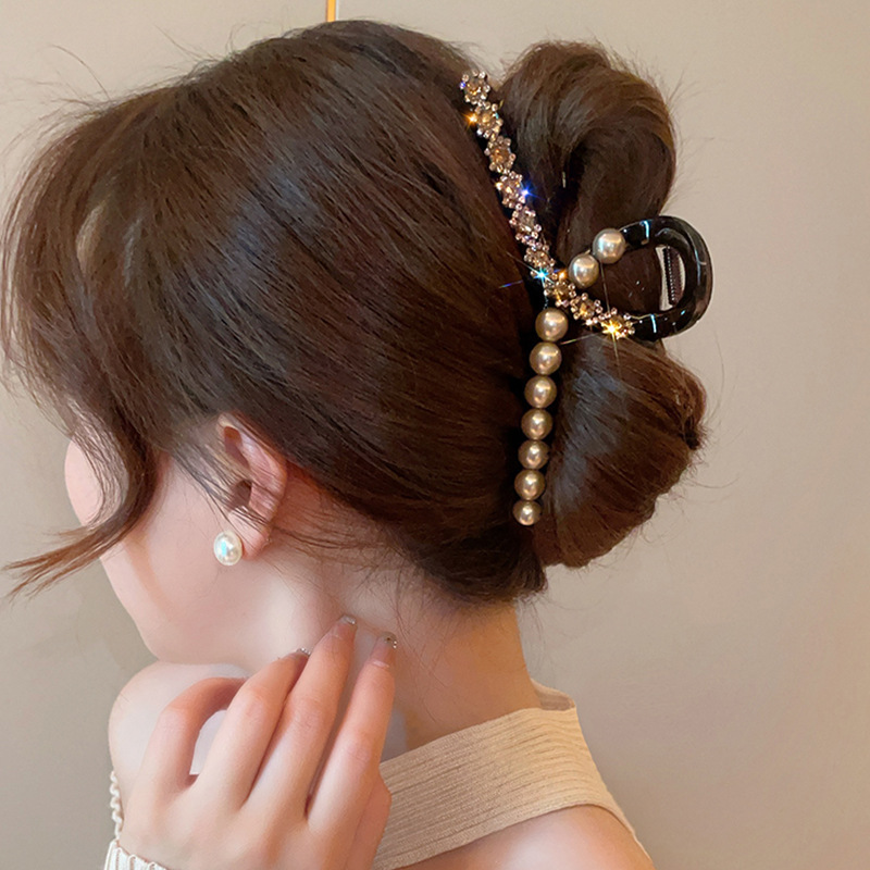 新款高级感春夏仿珍珠镶水钻抓夹轻奢闪钻鲨鱼夹后脑勺盘发夹发卡