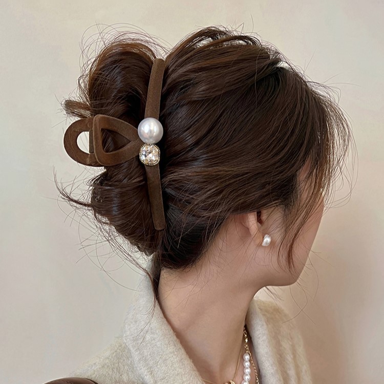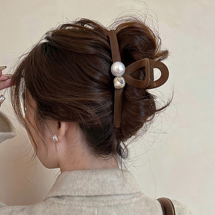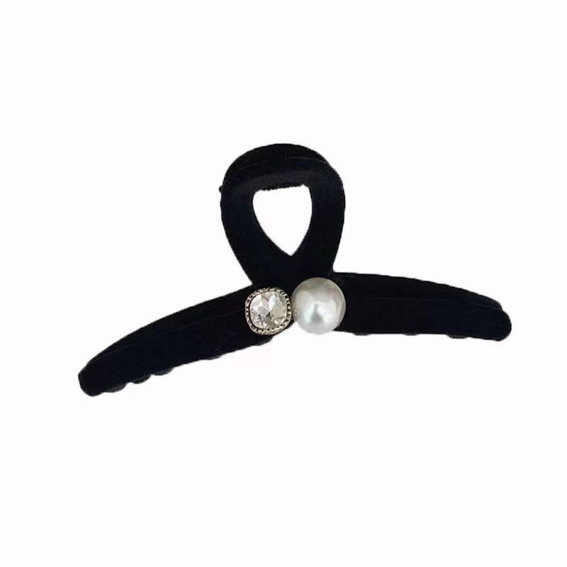 丝绒珍珠抓夹大号新款发夹女后脑勺高级感鲨鱼夹闪钻网红发饰