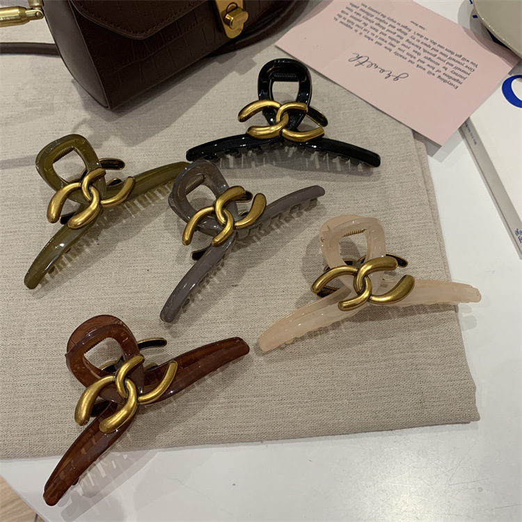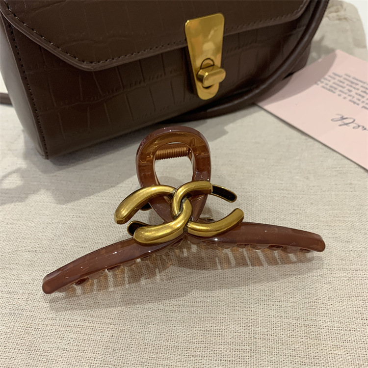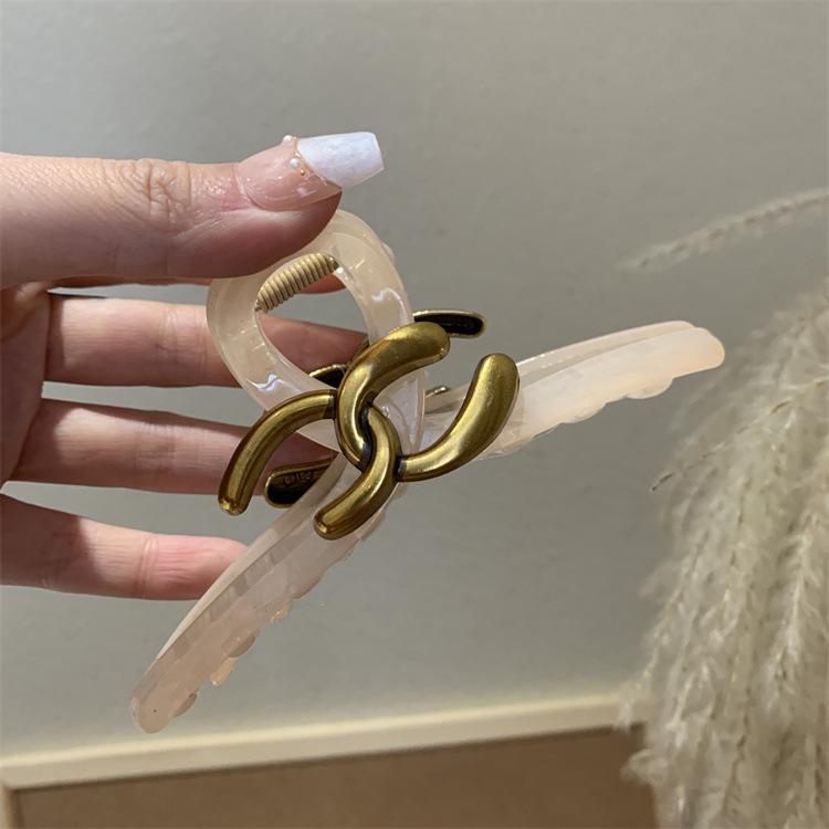 法式简约果冻色亚克力双C抓夹大号后脑勺盘发鲨鱼夹春夏新款发夹