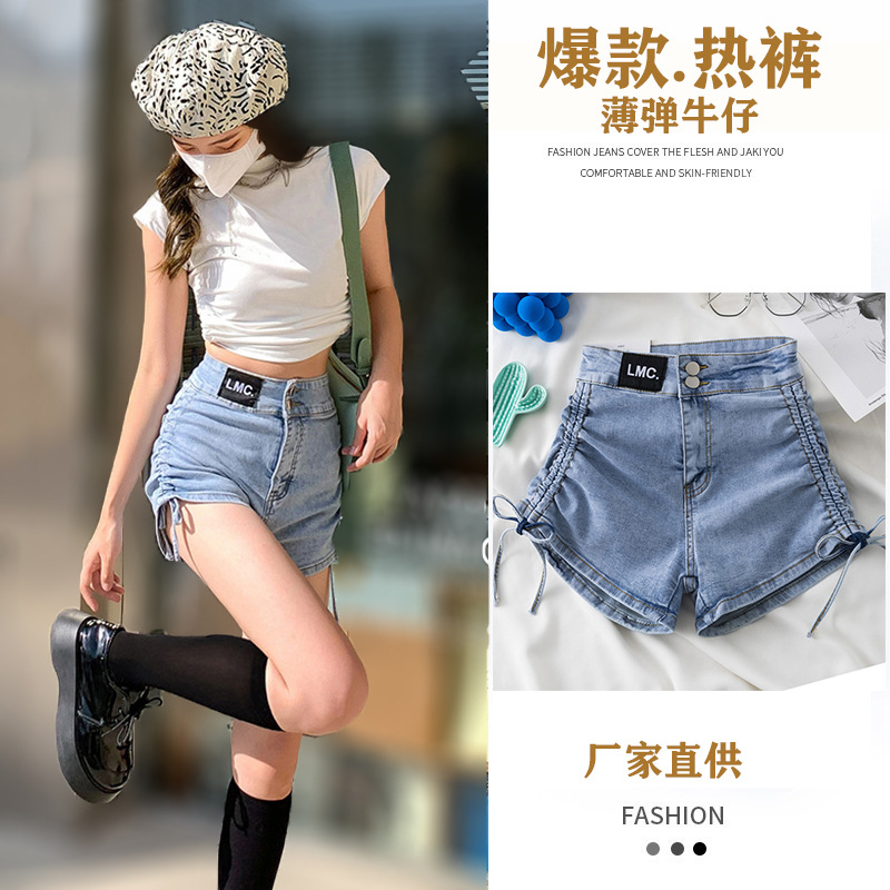 短裤女 牛仔裤夏季韩版设计感街潮抽绳显瘦薄弹力高腰包臀a字热裤