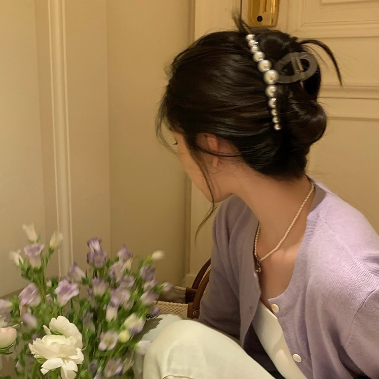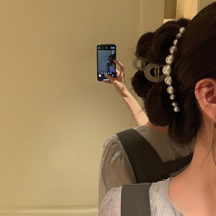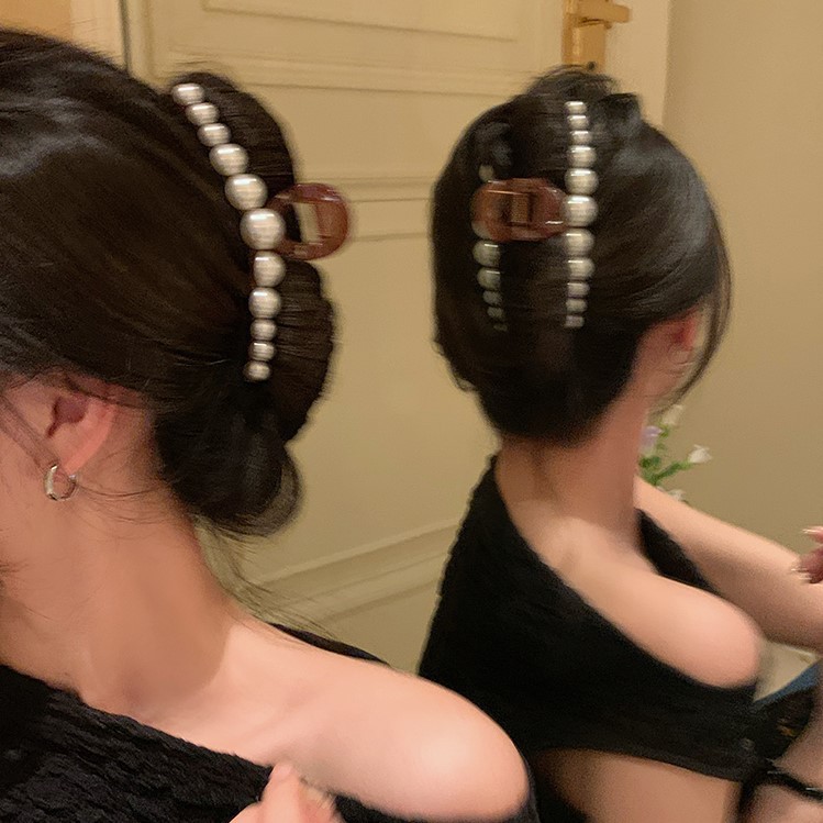 超大号13cm发量多珍珠抓夹鲨鱼夹发抓后脑勺发夹子盘发发卡女头饰