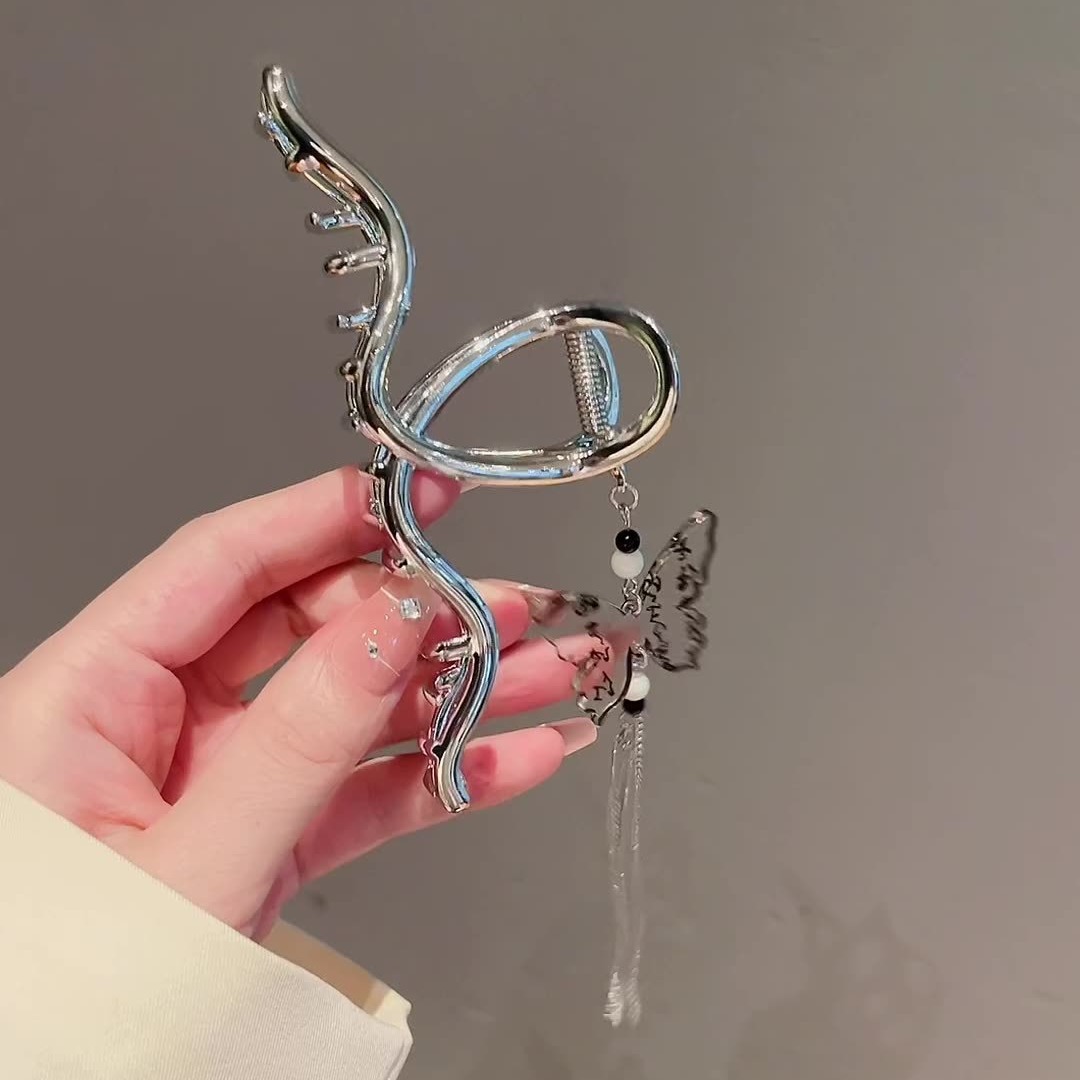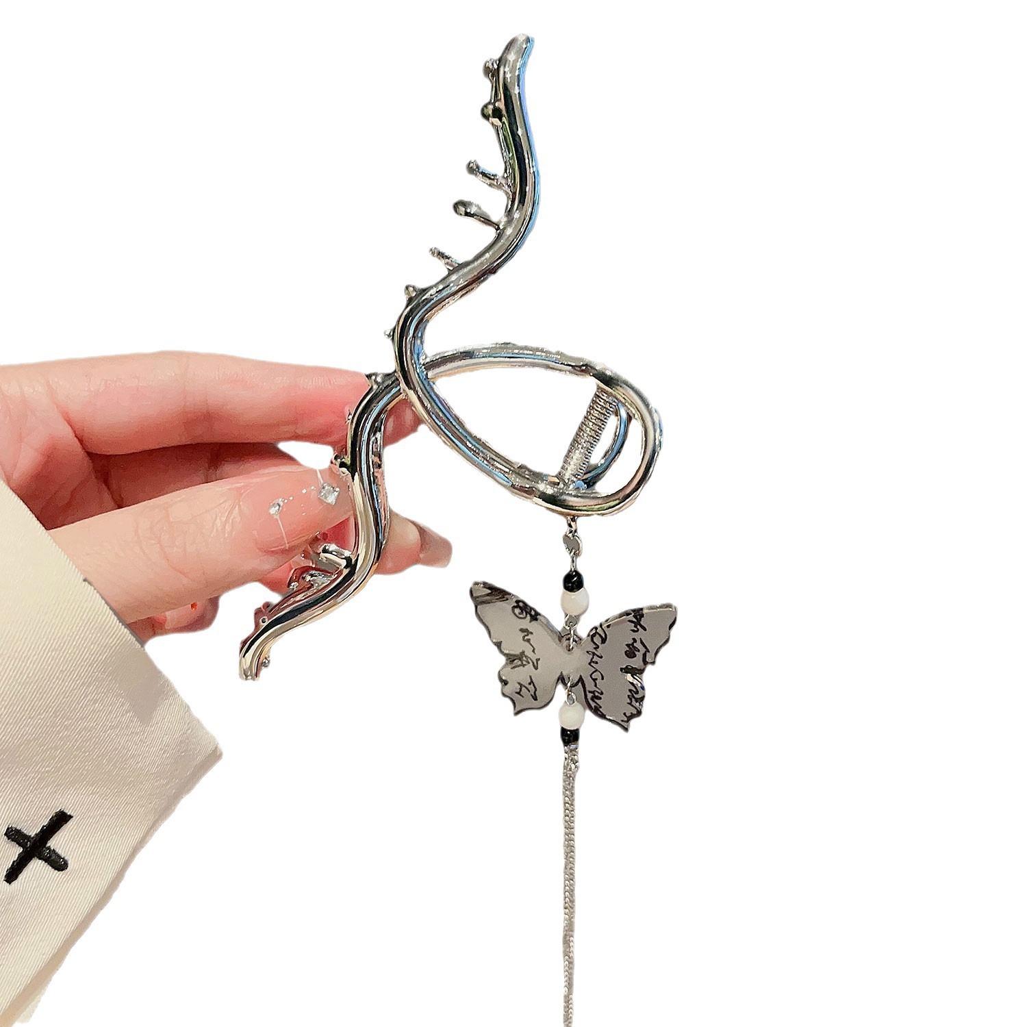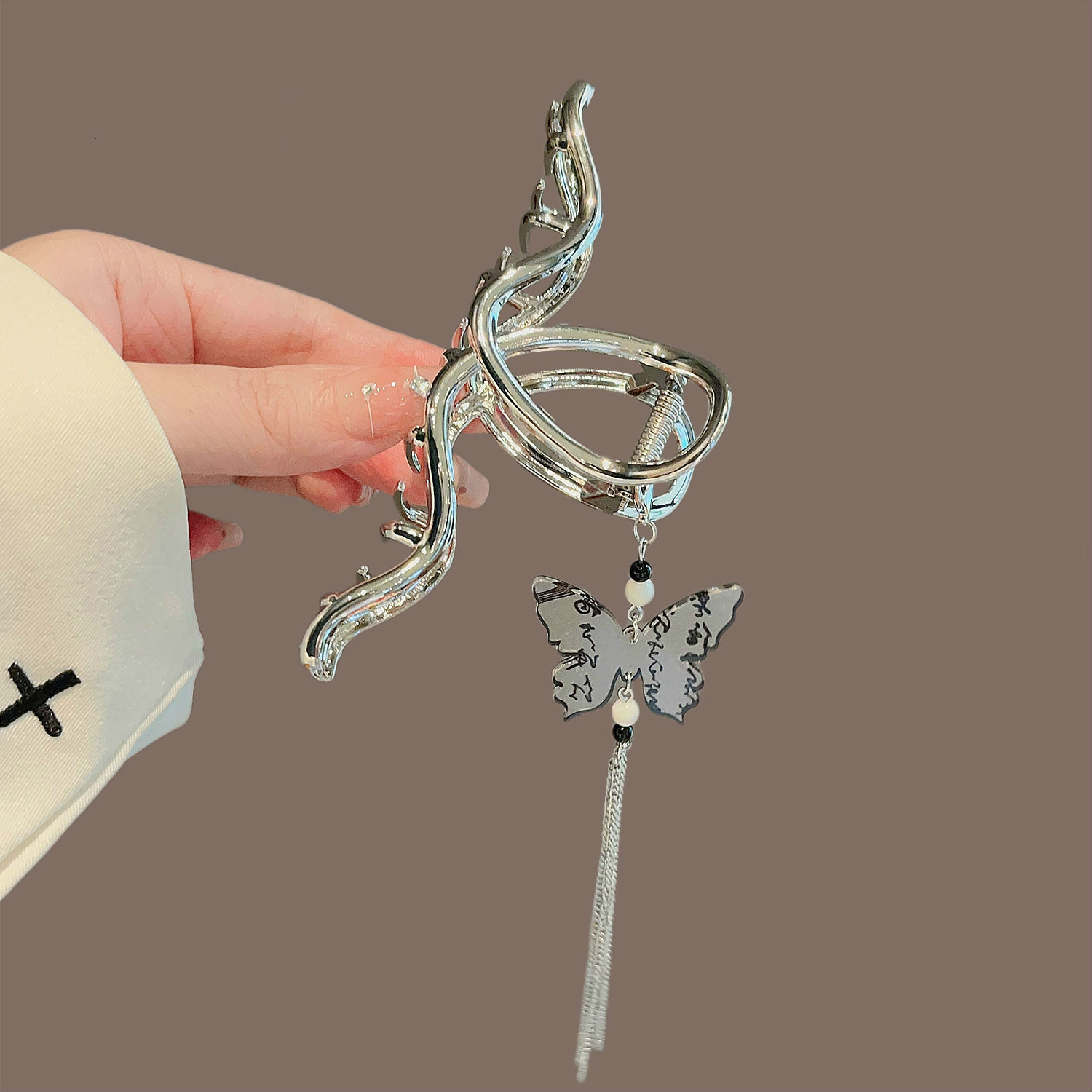 国风蝴蝶流苏大抓夹女新中式古风头饰发饰金属高级感发夹鲨鱼夹子