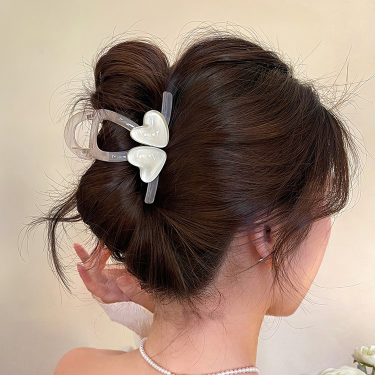 夏季爱心鲨鱼夹ins简约发夹女后脑勺小众款盘发抓夹新款发卡