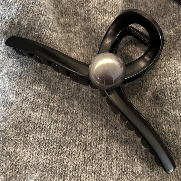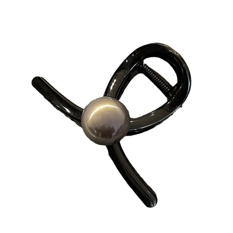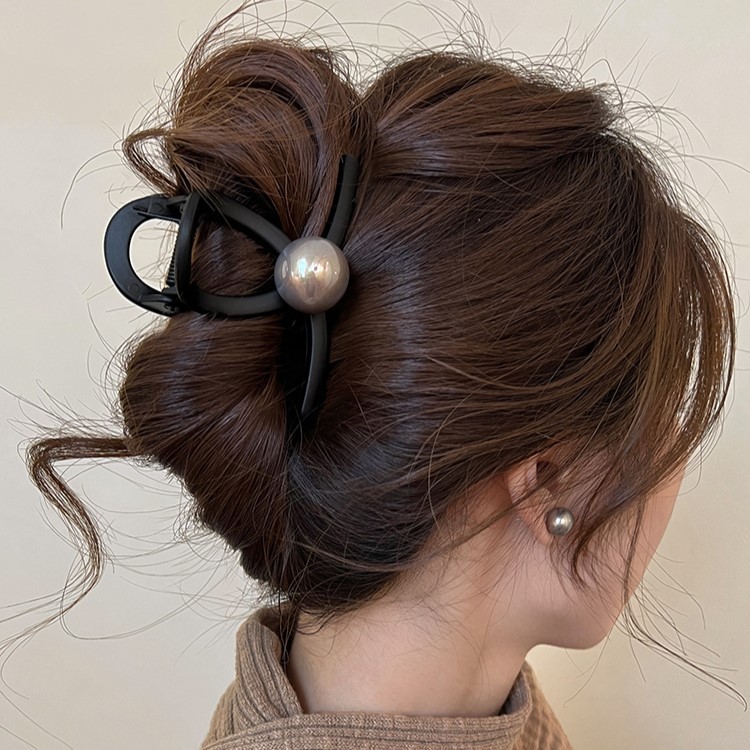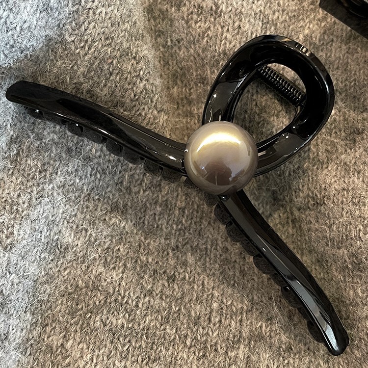 大号黑色珍珠抓夹女简约小众高级感发夹后脑勺鲨鱼夹发饰复古头饰
