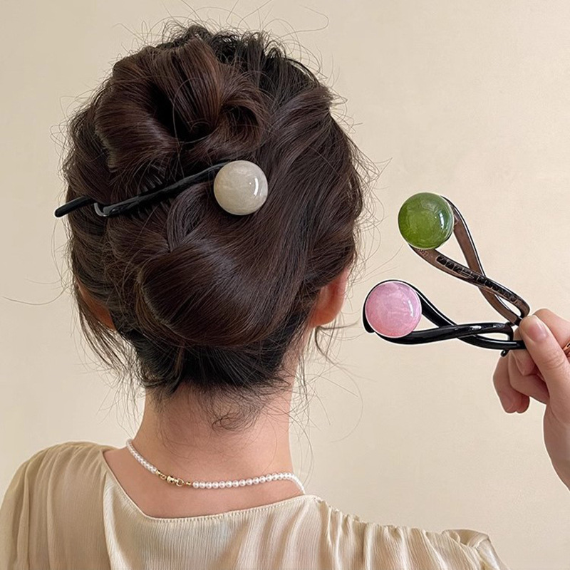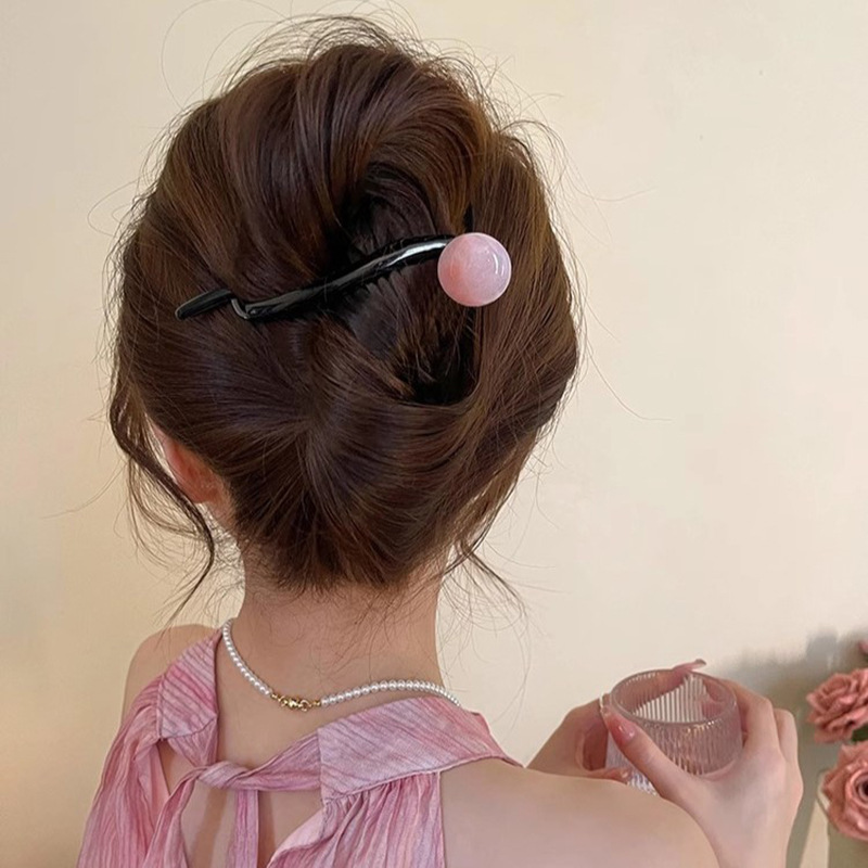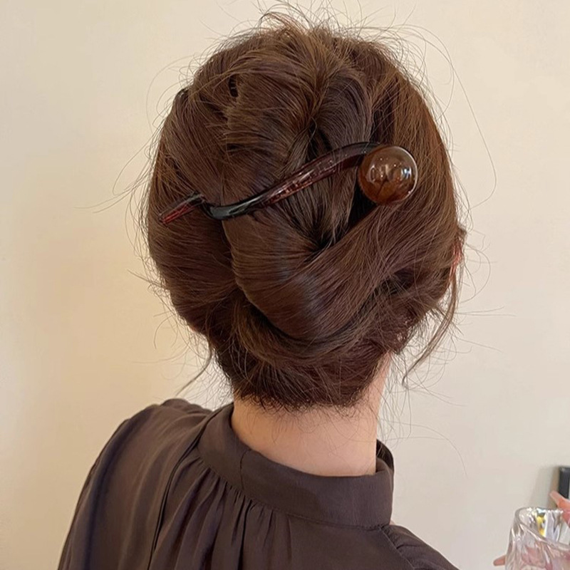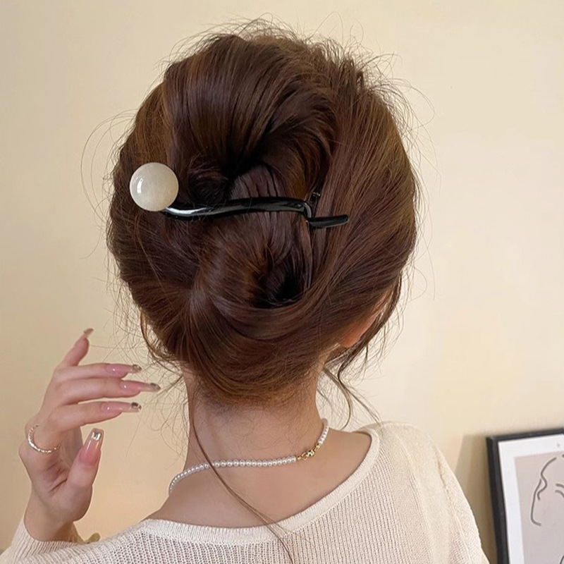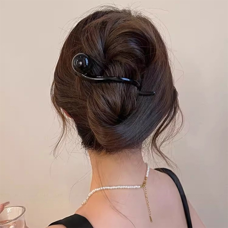 复古大气咖色珍珠一字抓夹女新款高级感扭扭发夹后脑勺鲨鱼夹