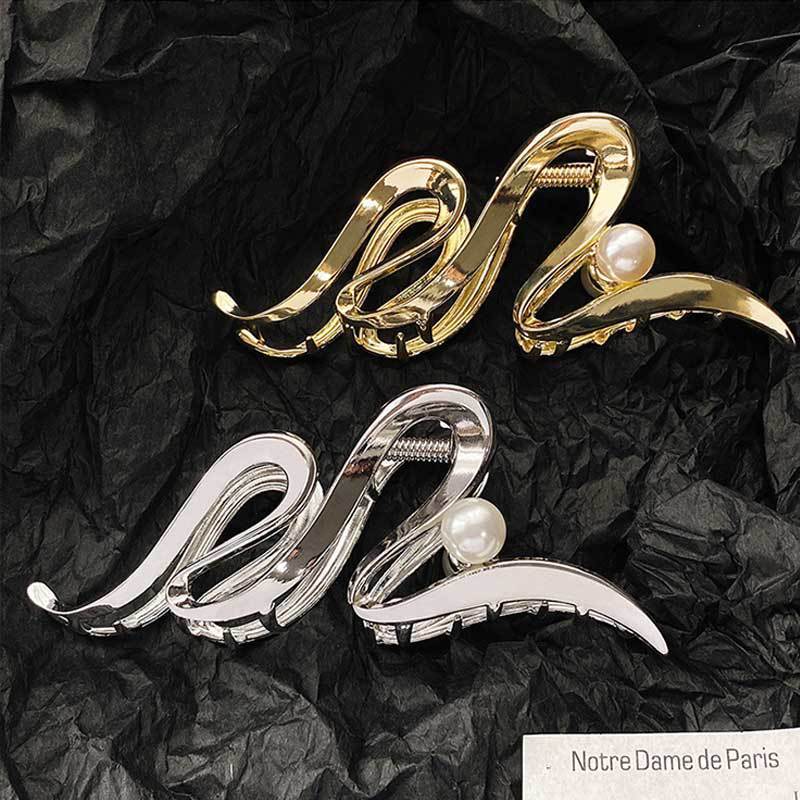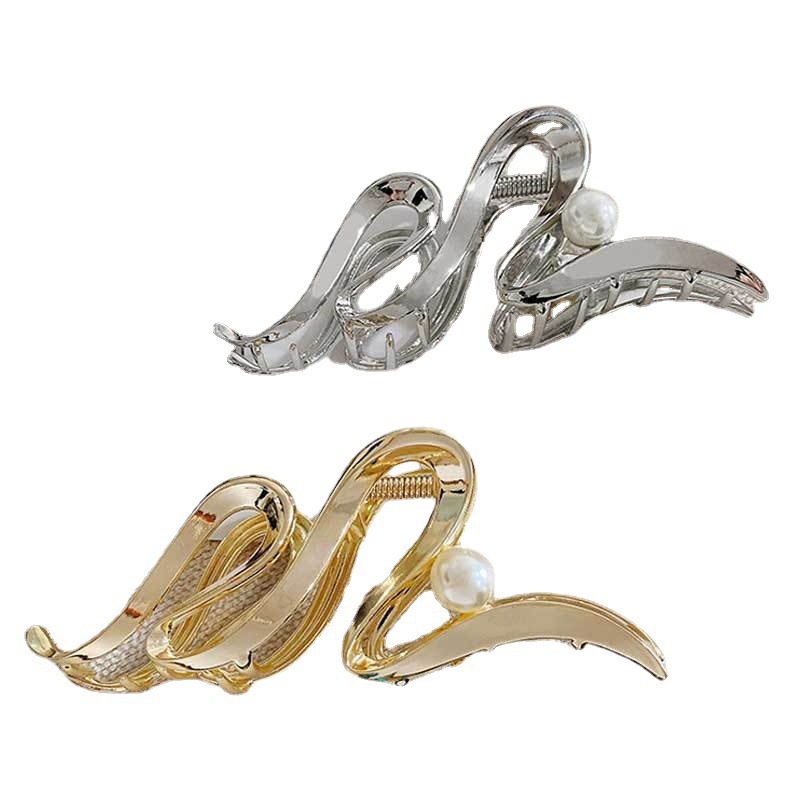 高级感金属抓夹大号发夹女后脑勺发量多盘发珍珠鲨鱼夹子发饰