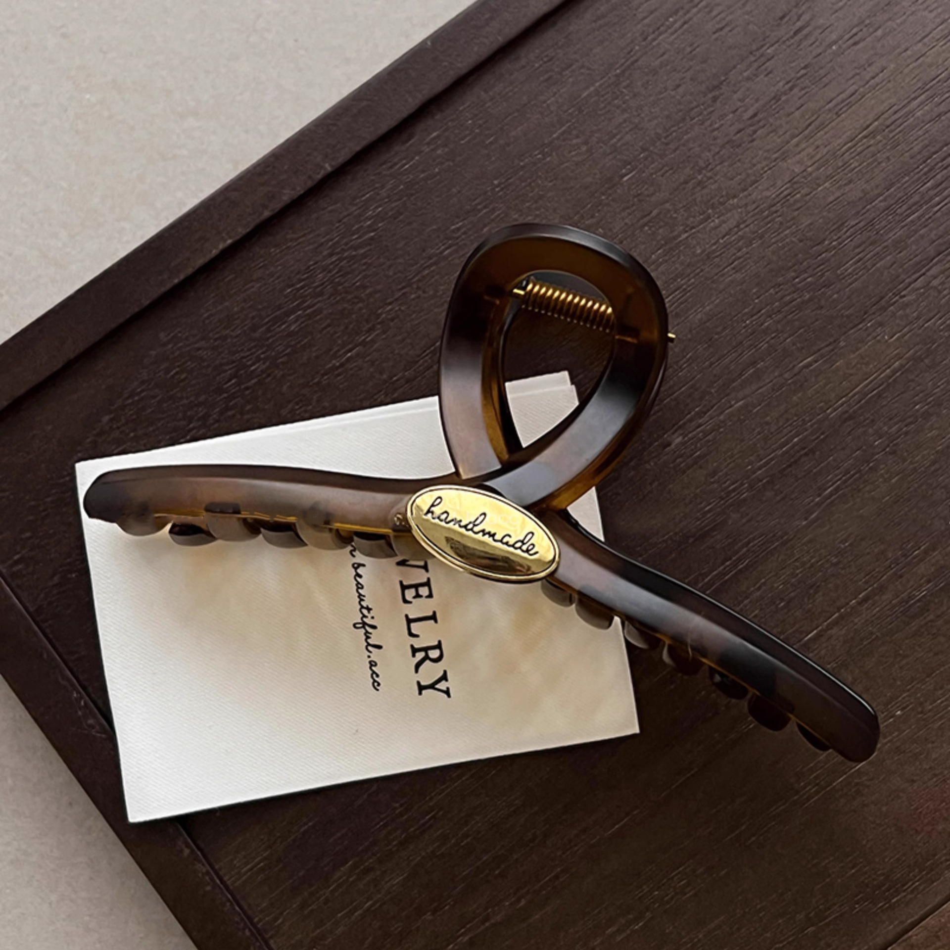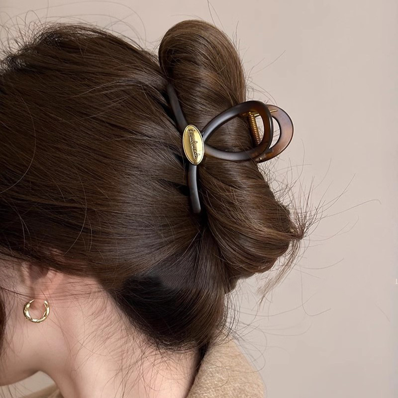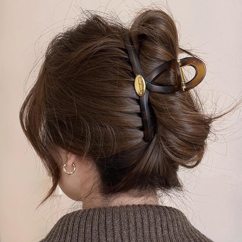 秋冬玳瑁色金标字母抓夹女新款高级感气质盘发鲨鱼夹发夹头饰