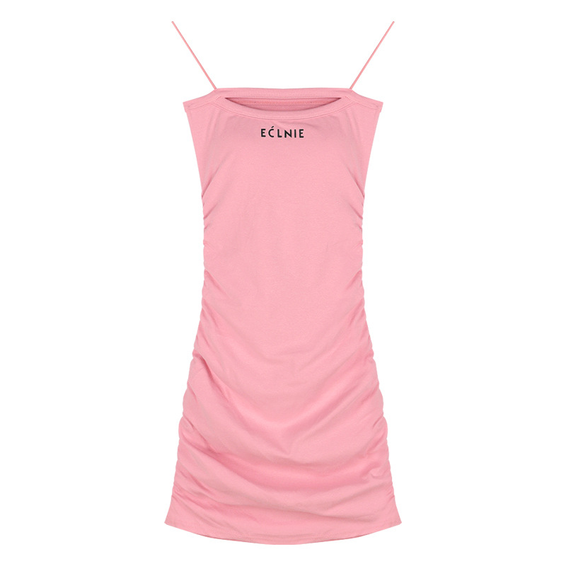法式别致粉色吊带连衣裙女夏季洋气收腰长裙高级感气质开叉包臀裙